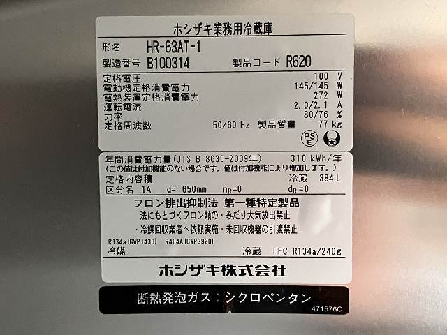 消費電力 | 冷却時:145/145W 霜取時:272/272W |
