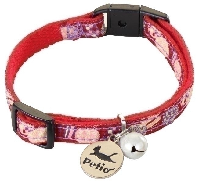 和風テイストのおしゃれなネコちゃん専用首輪。力が加わると外れるバックルを使用。反射鈴付。迷子札付。