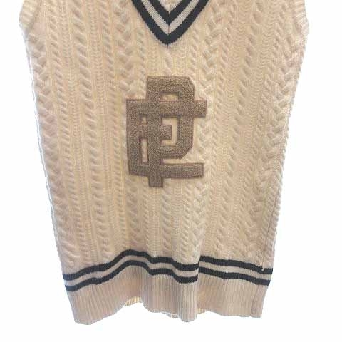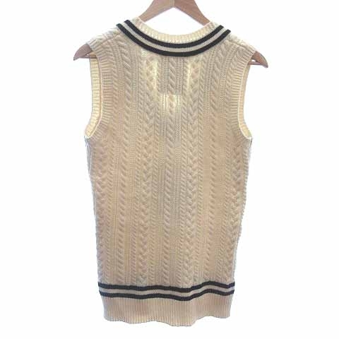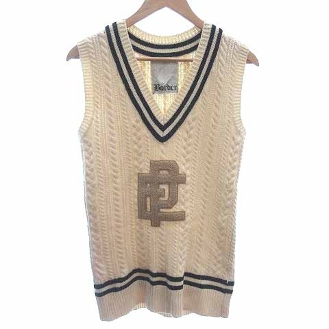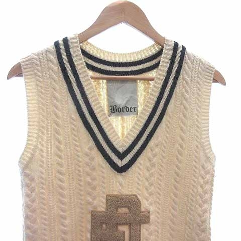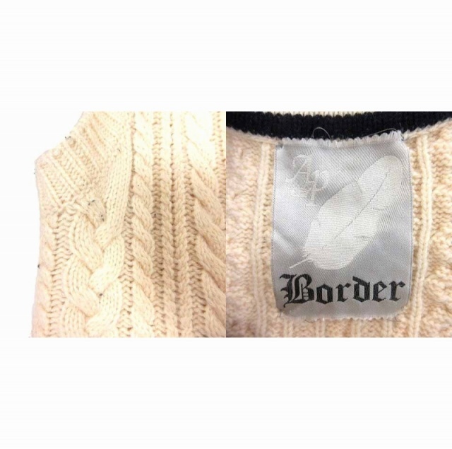 BORDER ベストニット プルオーバー ケーブル ウール アイボリー 白 ホワイト 紺 ネイビー /YK レディース