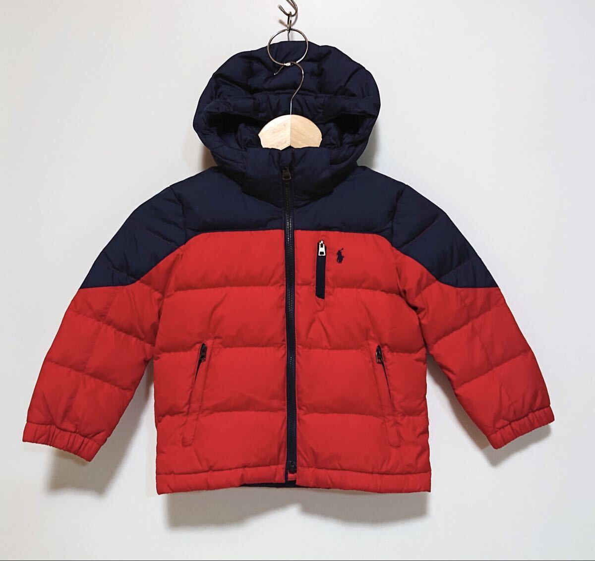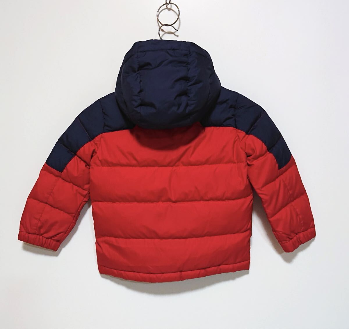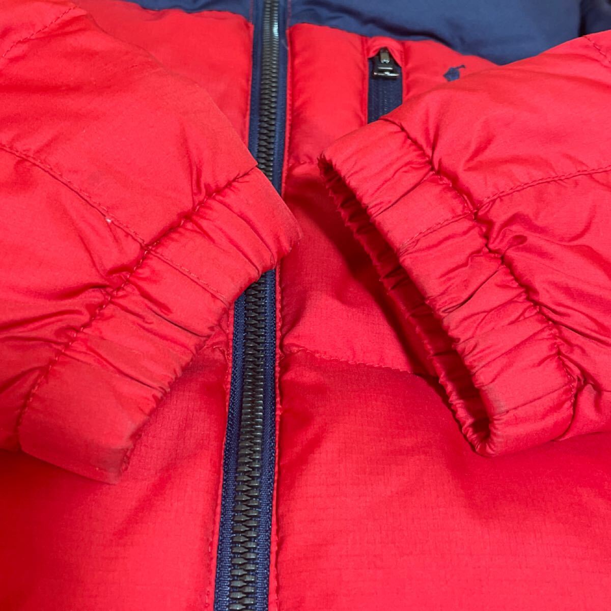 h4363gg POLO RALPH LAURENポロ ラルフローレン サイズ4(110cm) ダウンジャケット ネイビー×レッド キッズ 子供服 ロゴ刺繍 フード取外可