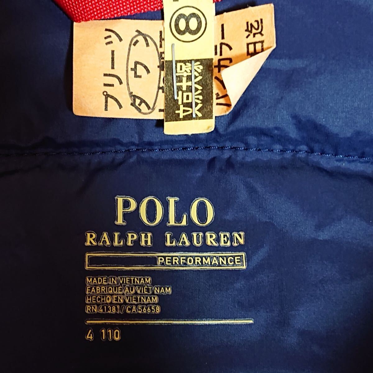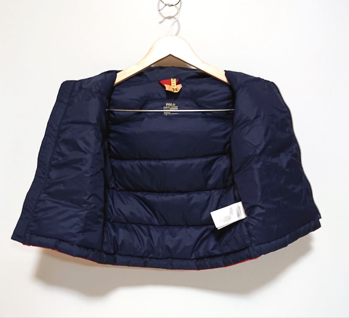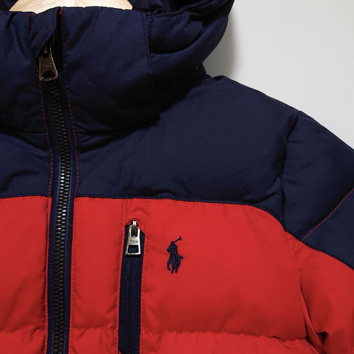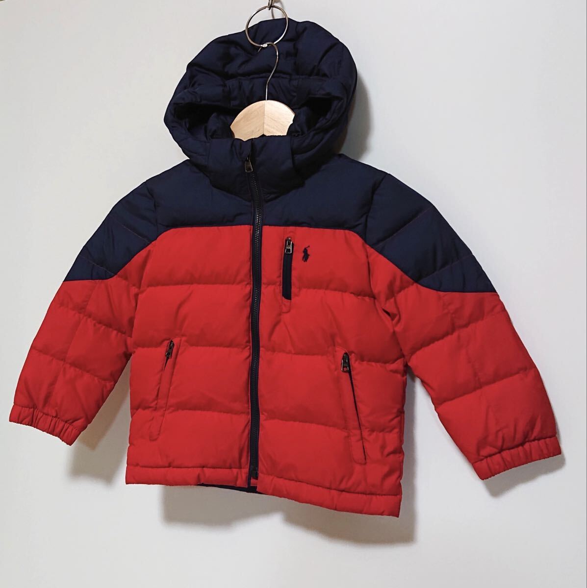 h4363gg POLO RALPH LAURENポロ ラルフローレン サイズ4(110cm) ダウンジャケット ネイビー×レッド キッズ 子供服 ロゴ刺繍 フード取外可