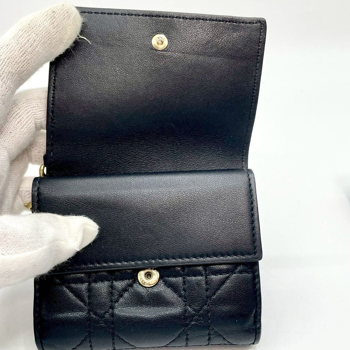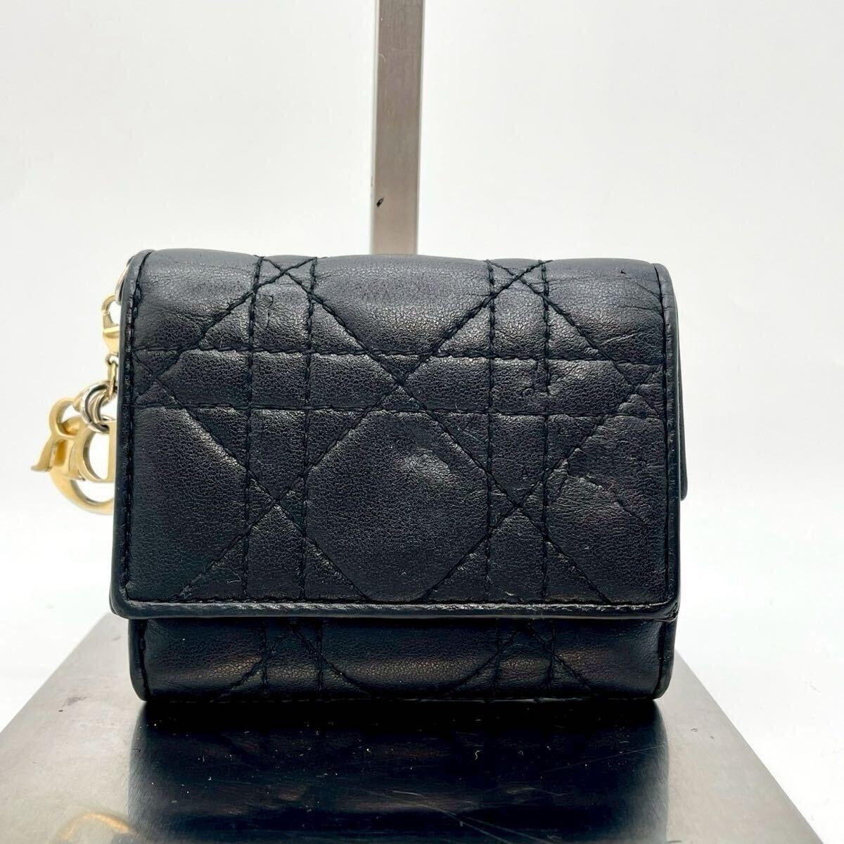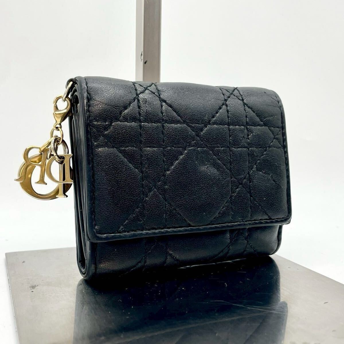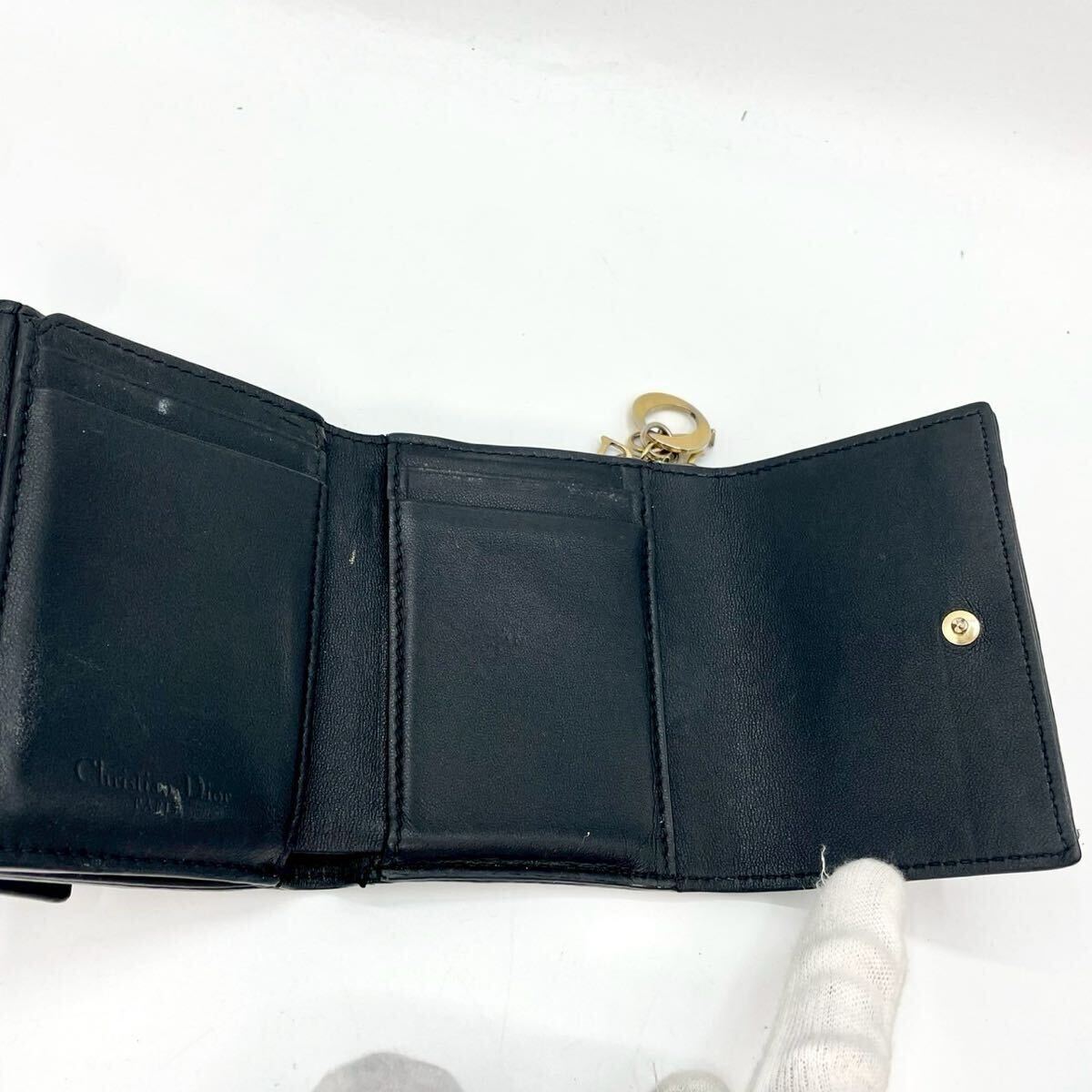 1円 ChristianDior クリスチャンディオール カナージュ 三つ折り財布 レディディオール 三つ折り ウォレット ディオール レザー ブラック