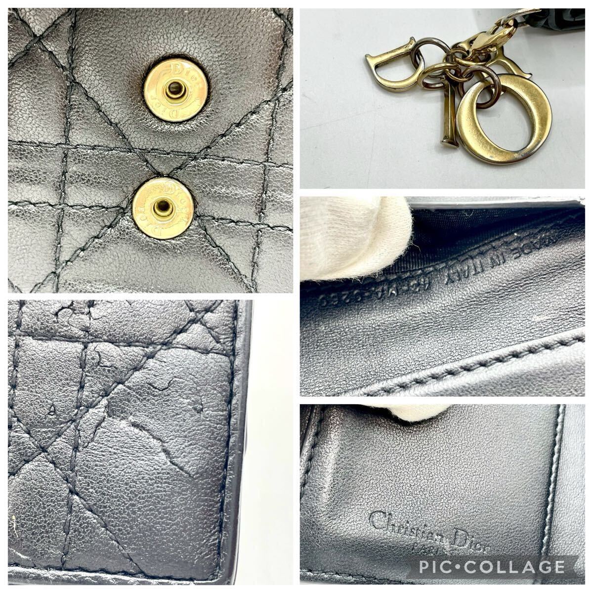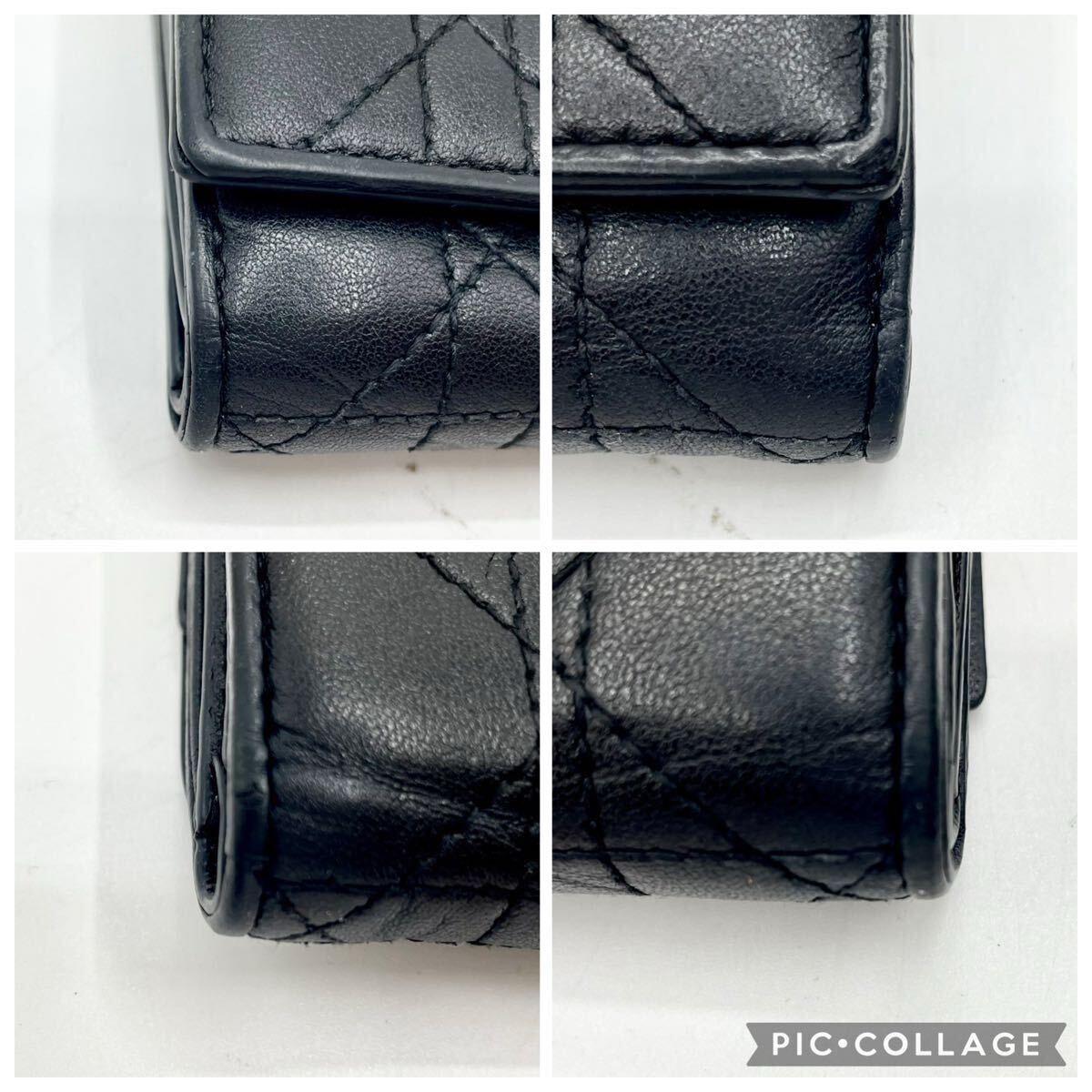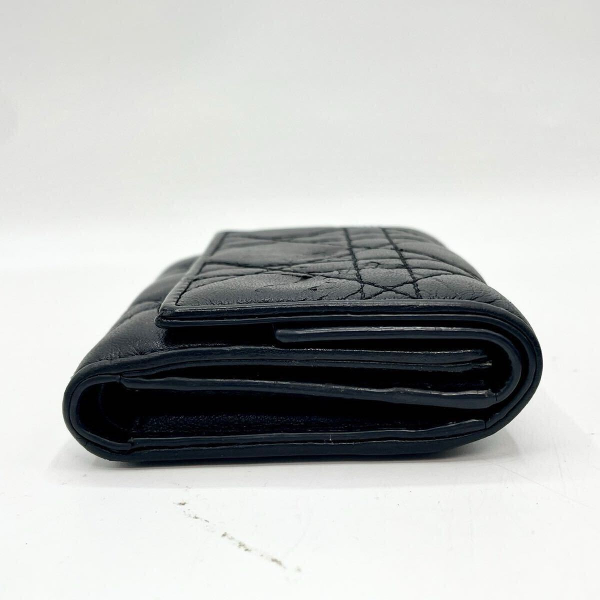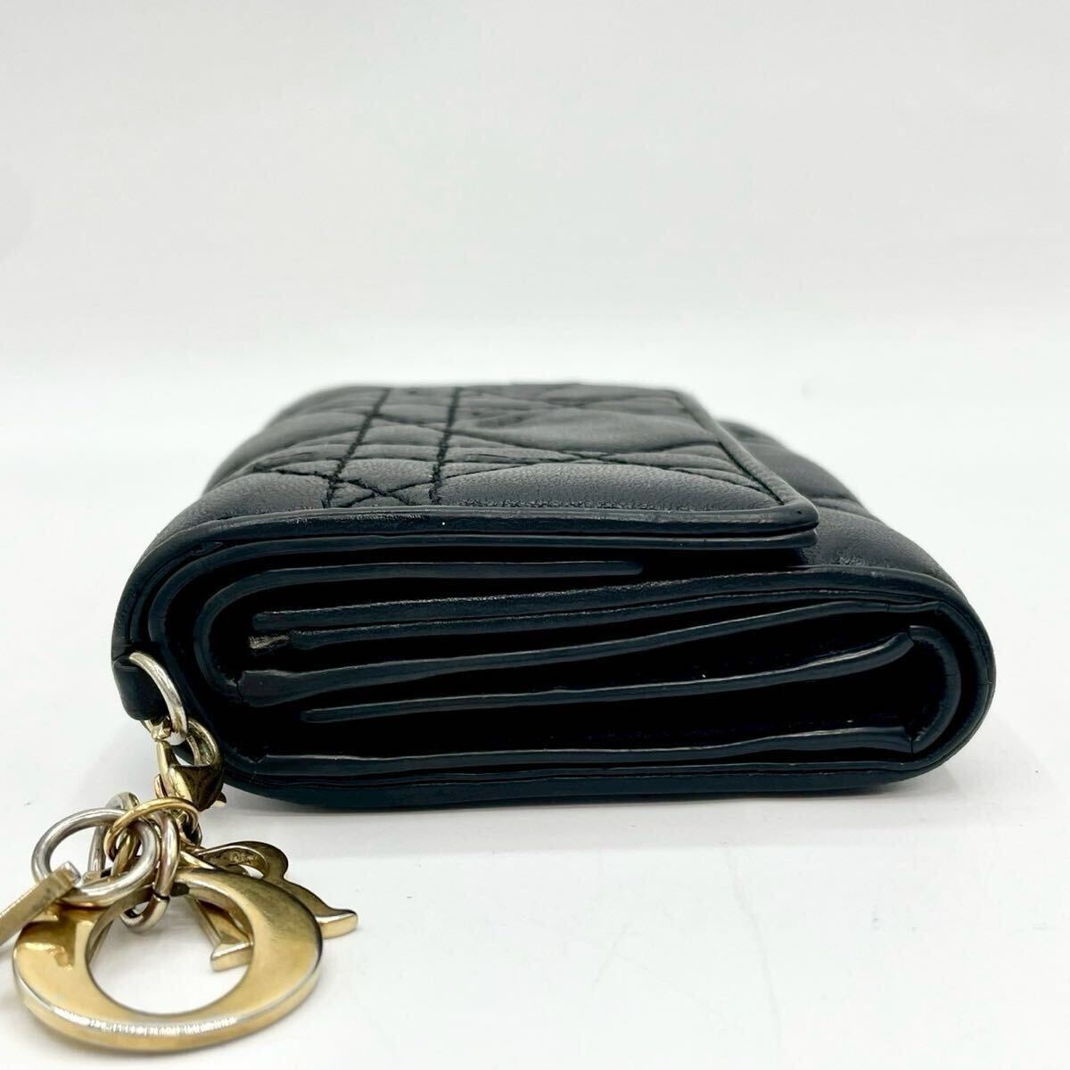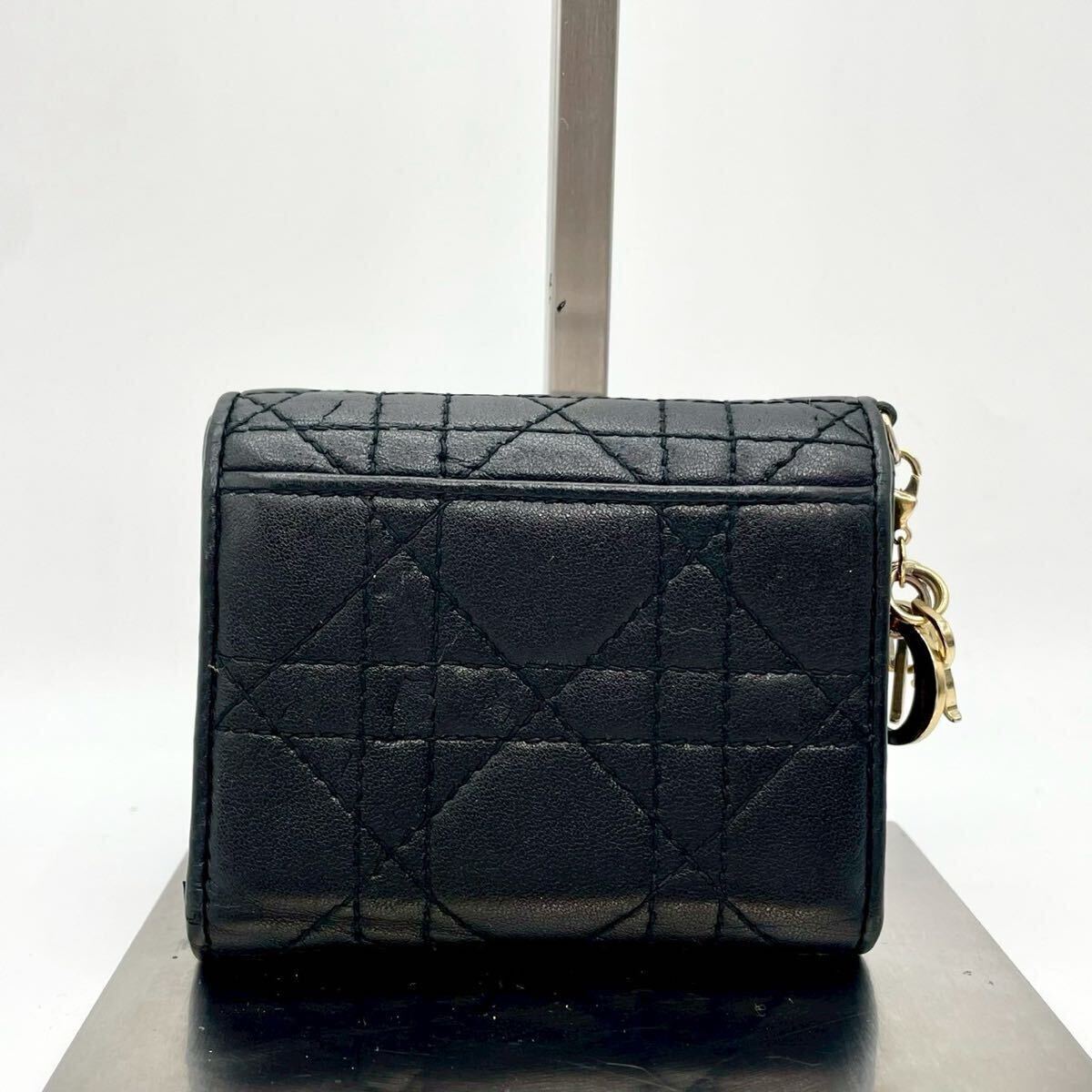 1円 ChristianDior クリスチャンディオール カナージュ 三つ折り財布 レディディオール 三つ折り ウォレット ディオール レザー ブラック