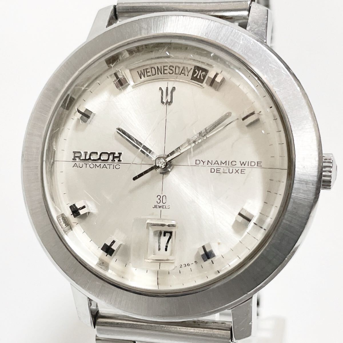 希少!稼働品 RICOH リコー DYNAMIC WIDE DELUXE ダイナミックワイドDX 30石 34805 自動巻 メンズ腕時計 デイデイト ヴィンテージ