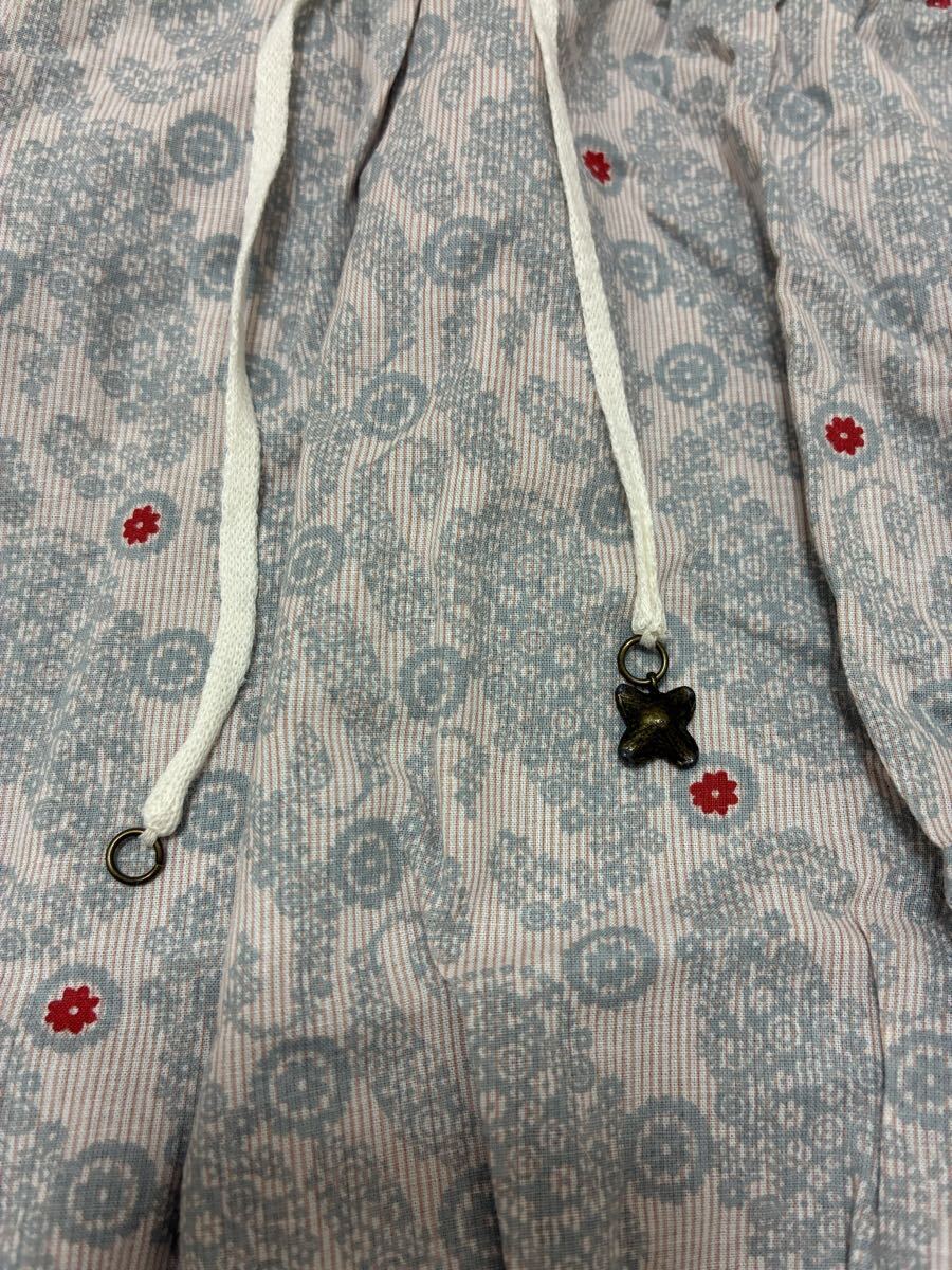 裏地付き、両サイドにポケットあり。ウエストはゴムでリブ編みになっています。綿100%