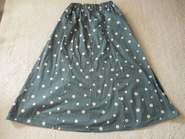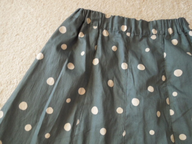 ロングスカート!M~Lサイズ(W64~77・H87~100)・くすんだグリーン地水玉