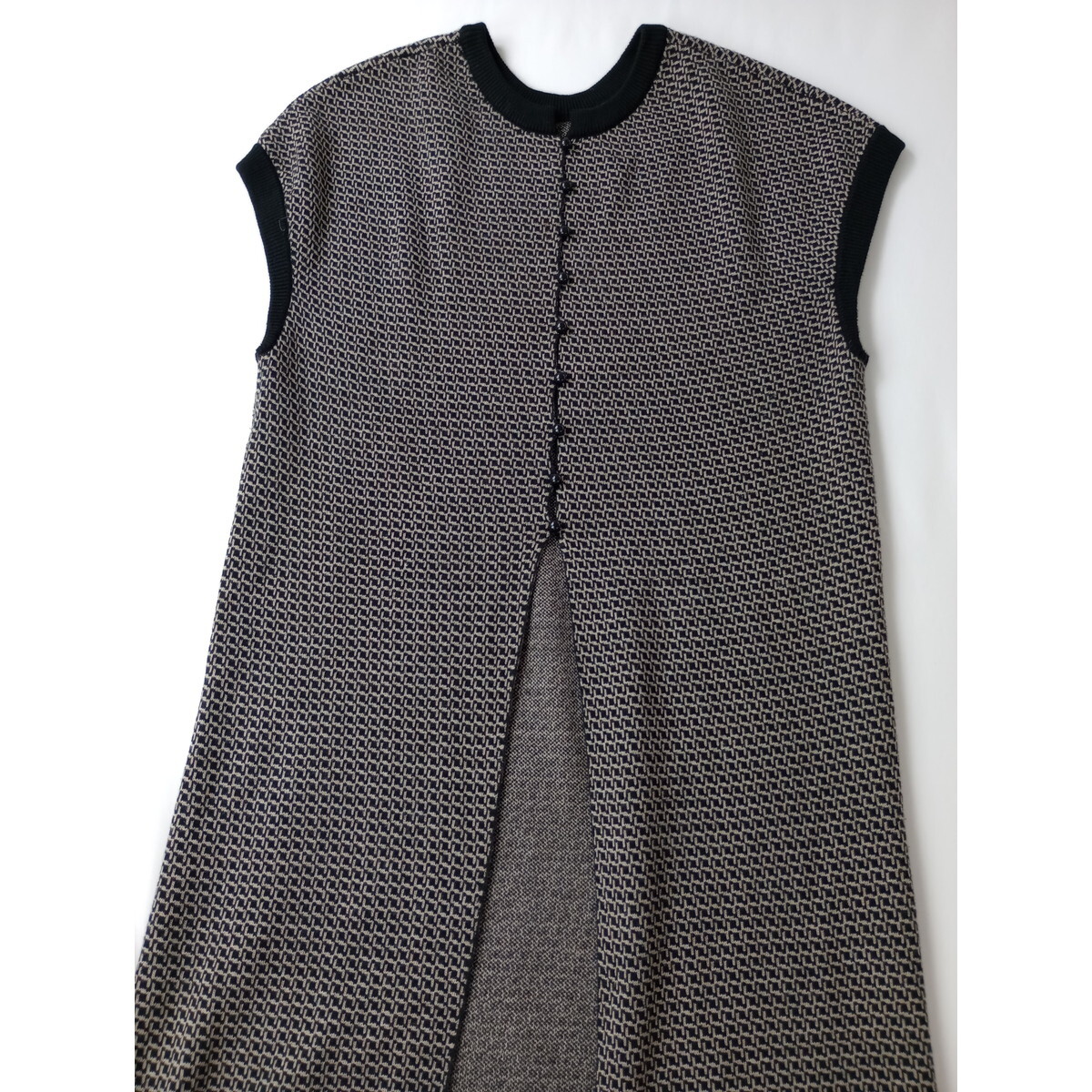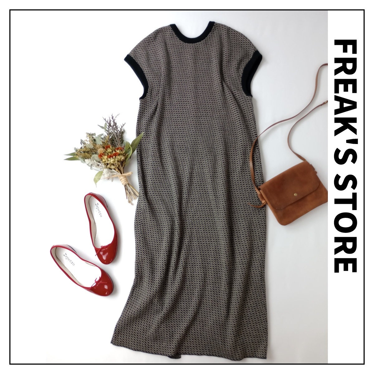 FREAK'S STORE フリークスストア「着こなし広がる♪」ウール 毛 混 総柄 ニット ロング ワンピース ベスト レイヤード Free(8M+5322)