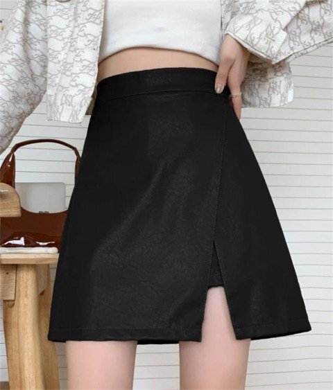 ミニパンツ ショートパンツ キュロット ミニスカート風 PUレザー シンプル カジュアル M ブラック