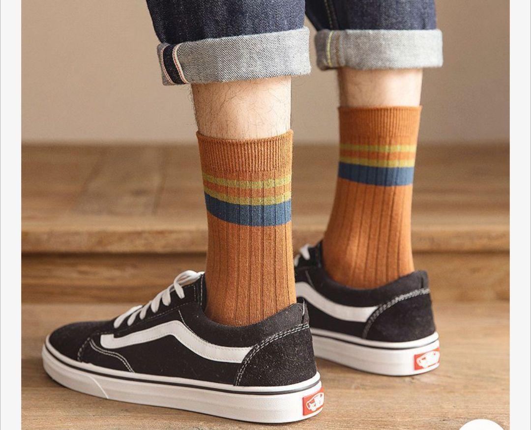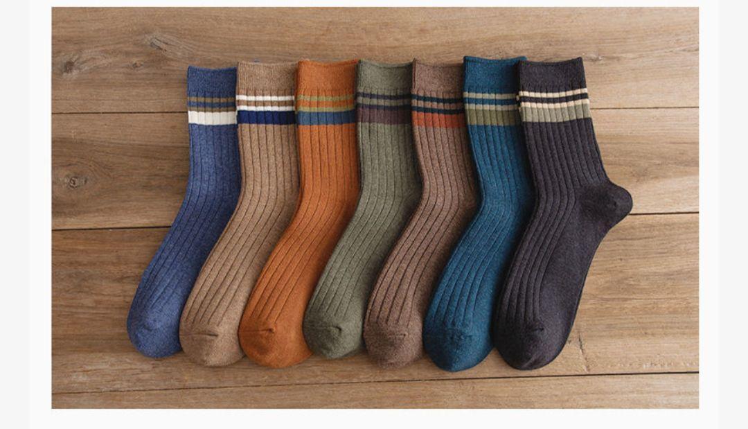 【メンズ ソックス7色セット ボーダー 秋色 ブリティッシュ 吸汗防臭 カジュアル プレゼント 英国風】