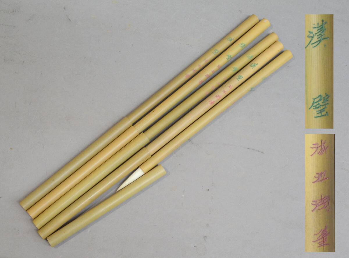 漢璧 淅江湖筆 五本      検)古筆 老筆 書道具 文房具 羊毛筆 木彫筆 銘竹管筆 唐筆 長鋒宿 湖州