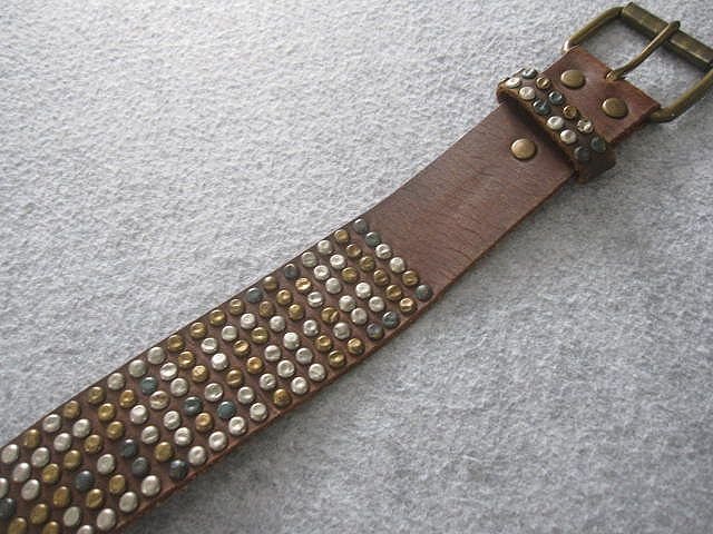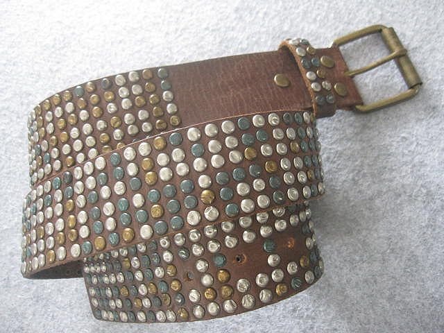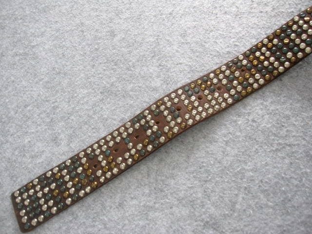 メタルスタッズ レザーベルト (全長107幅4.3穴79.5/83/85.5/88/90.5/93/95.5/98cm) RR.XBK.SW。本品のみでございます。ユーズドです、着用に差し支える大きなダメージはございません。ノークレームノーリターンノーキャンセルでお願いします。