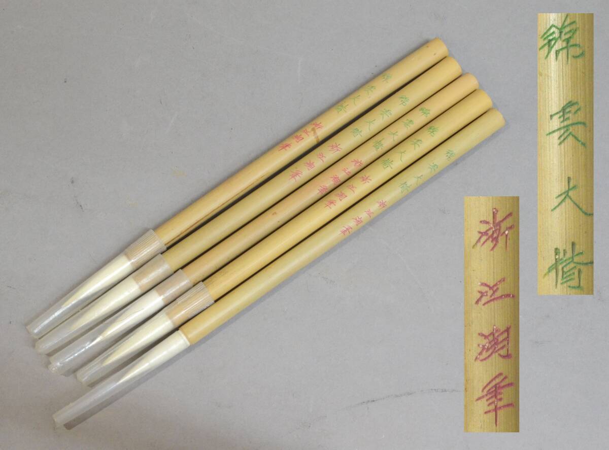 錦雲大楷 淅江湖筆 五本      検)古筆 老筆 書道具 文房具 羊毛筆 木彫筆 銘竹管筆 唐筆 長鋒宿 湖州
