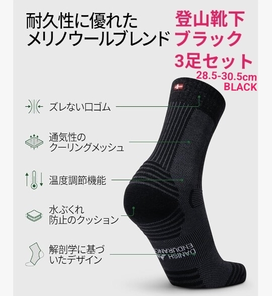 ハイキング、トレッキング、アウトドア、ウォーキング、旅行、寒い時期のソックスとしておすすめです。