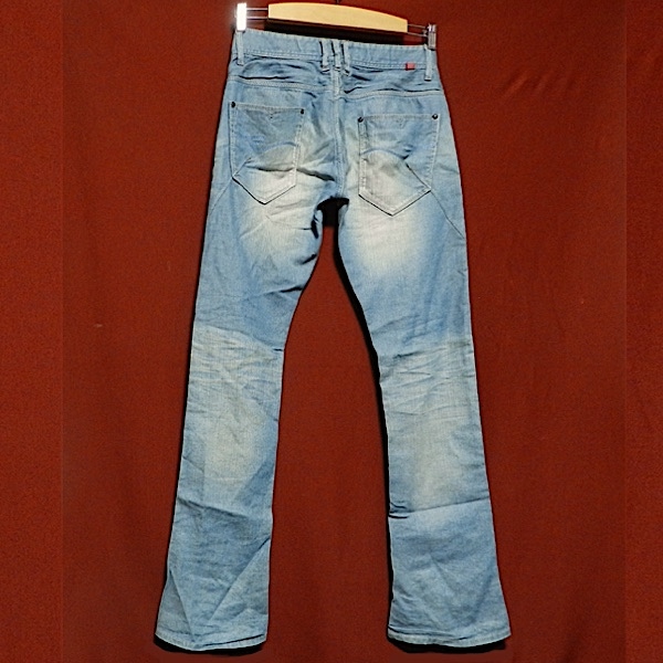リエラボ ニコル ブーツカット フレア パンタロン デニム パンツ ジーンズ 色落ち ユーズド加工 耳付き オリジナル チェーンステッチ 44 S