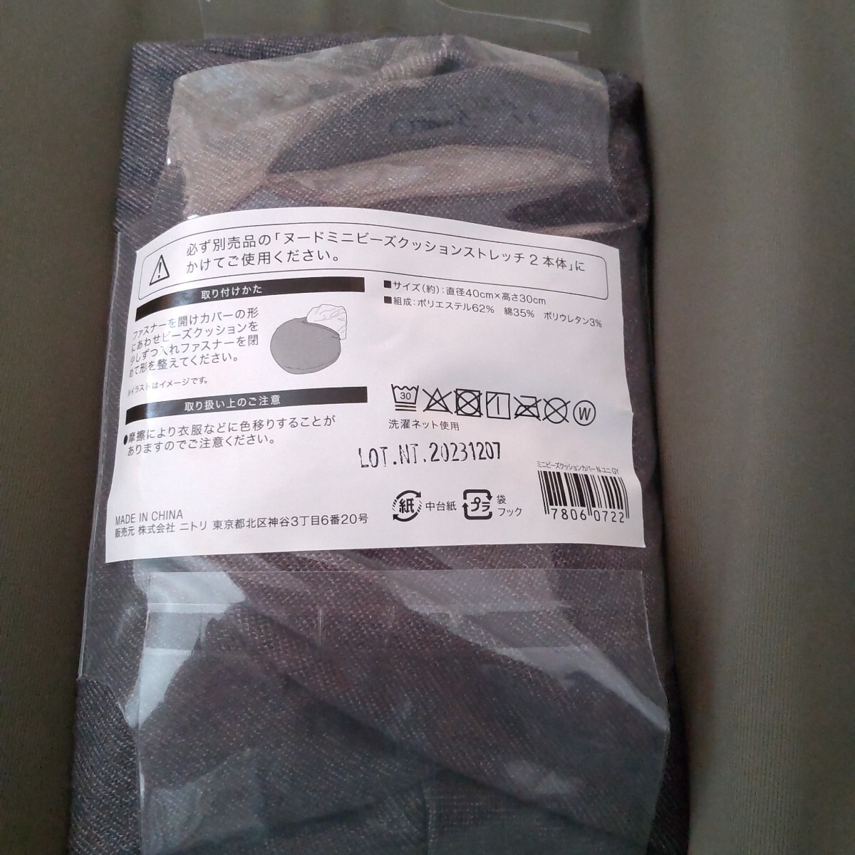 ニトリ ビーズクッションミニ専用カバー ダークグレー