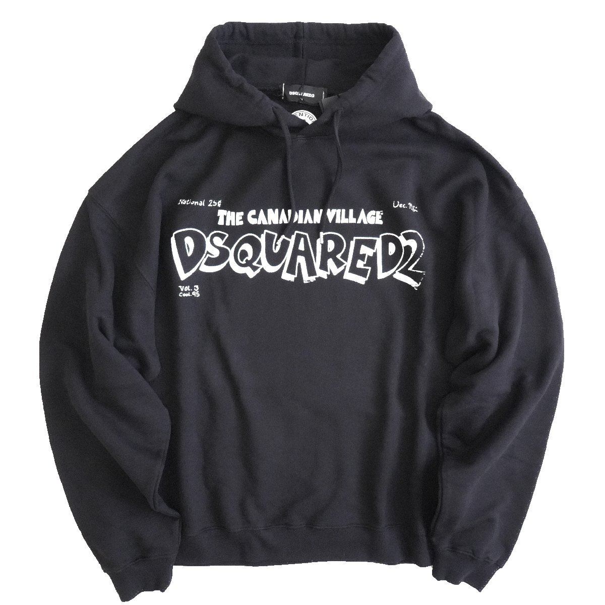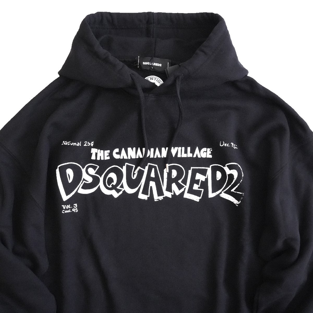 2024◆新品◆ディースクエアード2◆差をつける!リッチな貫禄 黒パーカ DSQUARED2 デカロゴ スウェット パーカー XL◆オーバーサイズフ-ディ