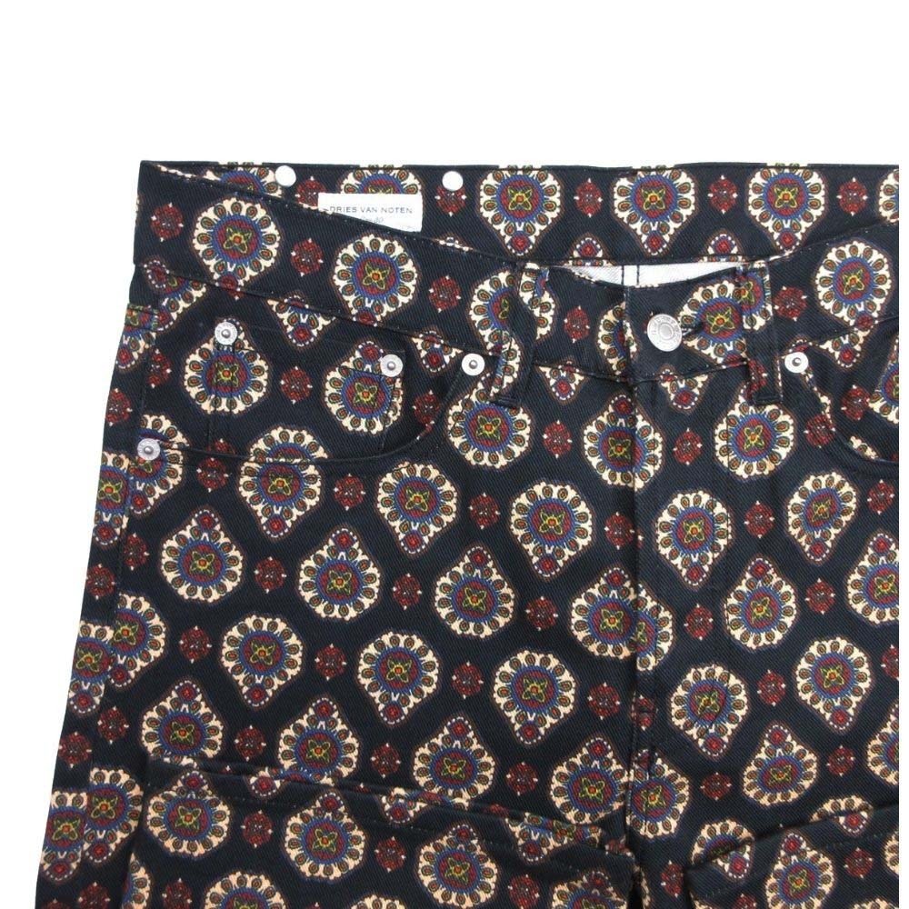 新品同様 21aw DRIES VAN NOTEN ドリスヴァンノッテン 総柄 ストレートパンツ コットン トラウザー 30 ブラック マルチカラー