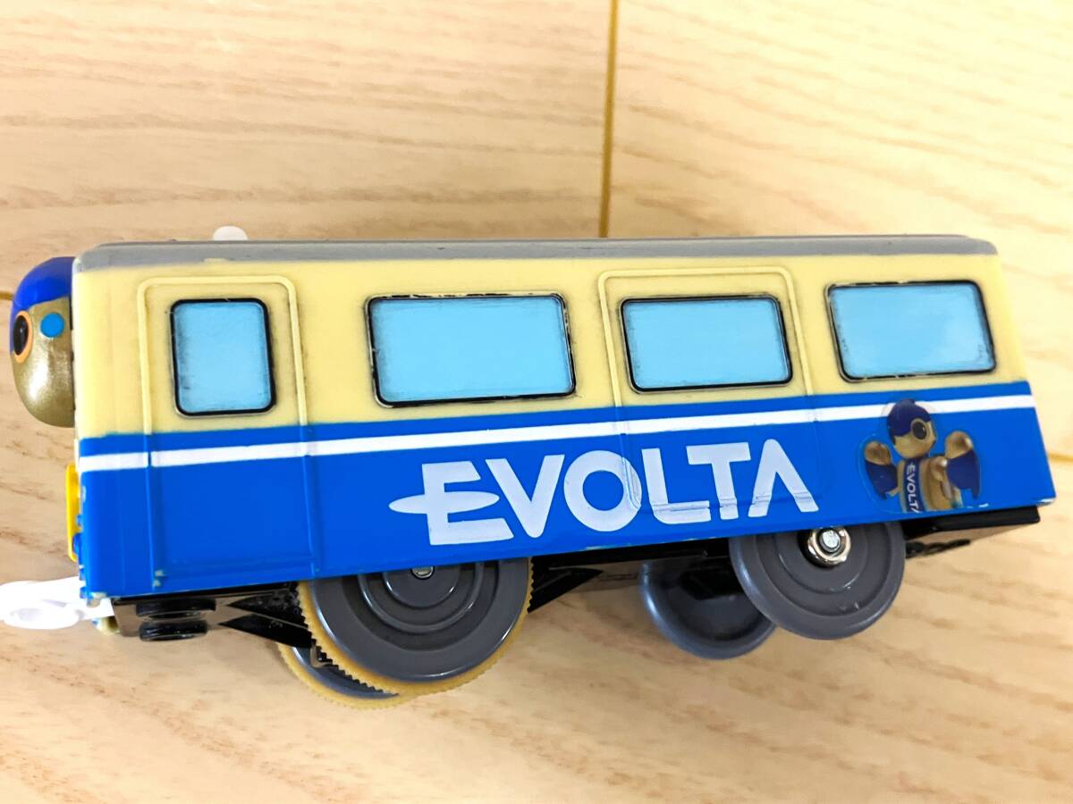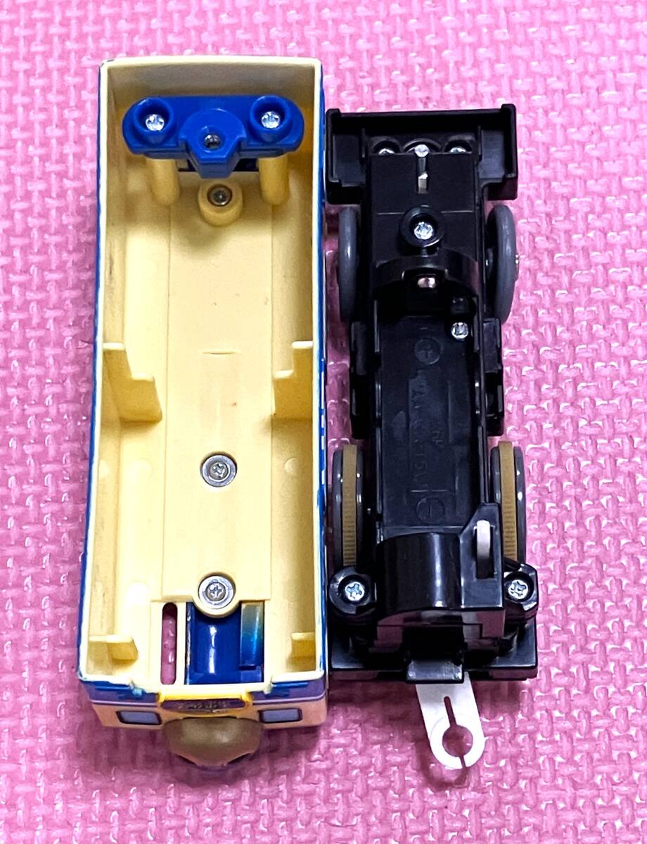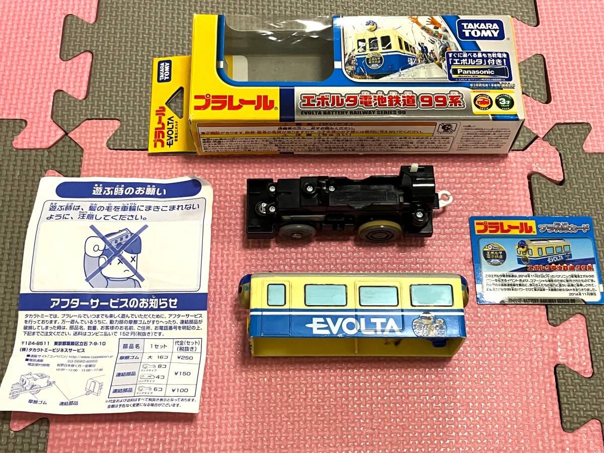 エボルタ電池鉄道99系のプラレール車両です。 2014年10月中旬〜2015年2月15日まで行われていた『エボルタチャレンジ!廃線1日復活キャンペーン』のプラレールコース当選品として、5000名に配布された車両です。 実車はパナソニックによって行われた『エボルタチャレンジ2014』というイベントの一環で、パナソニックと秋田県立大学が共同で制作した車両であり、2014年11月2日にはエボルタ単1電池99本で、廃線となった小坂製錬小坂線の旧雪沢温泉駅付近から、約8.5km先の旧御成町踏切までを地元の小学生ら10名を乗せて走破しました。 こちらのお品は子供が遊んだものであり、塗装ハガレ・汚れもあります。 また電池を入れてみましたが動きませんでした。 ジャンク品扱いとして、ノークレームノーリターンにてお願い致します。 因みに当該車両には車両の他にエボルタ単3形乾電池1本が付属していましたが、そちらは同封しません。ご了承下さい。 状態は写真にてご判断下さい。 ご不明な点等ございましたら、質問欄よりお問い合わせ下さい。 それではご入札をお待ちしております。 | |||