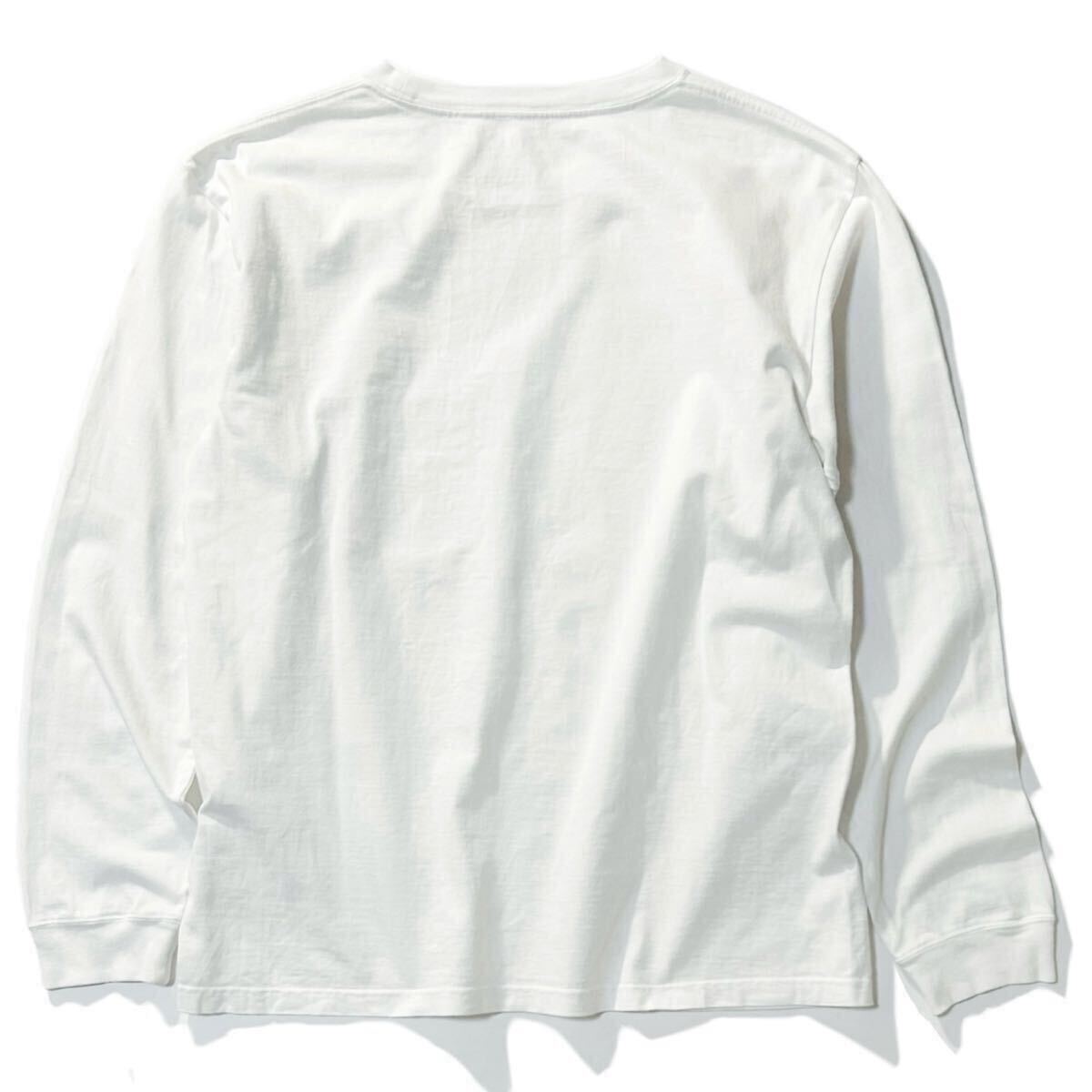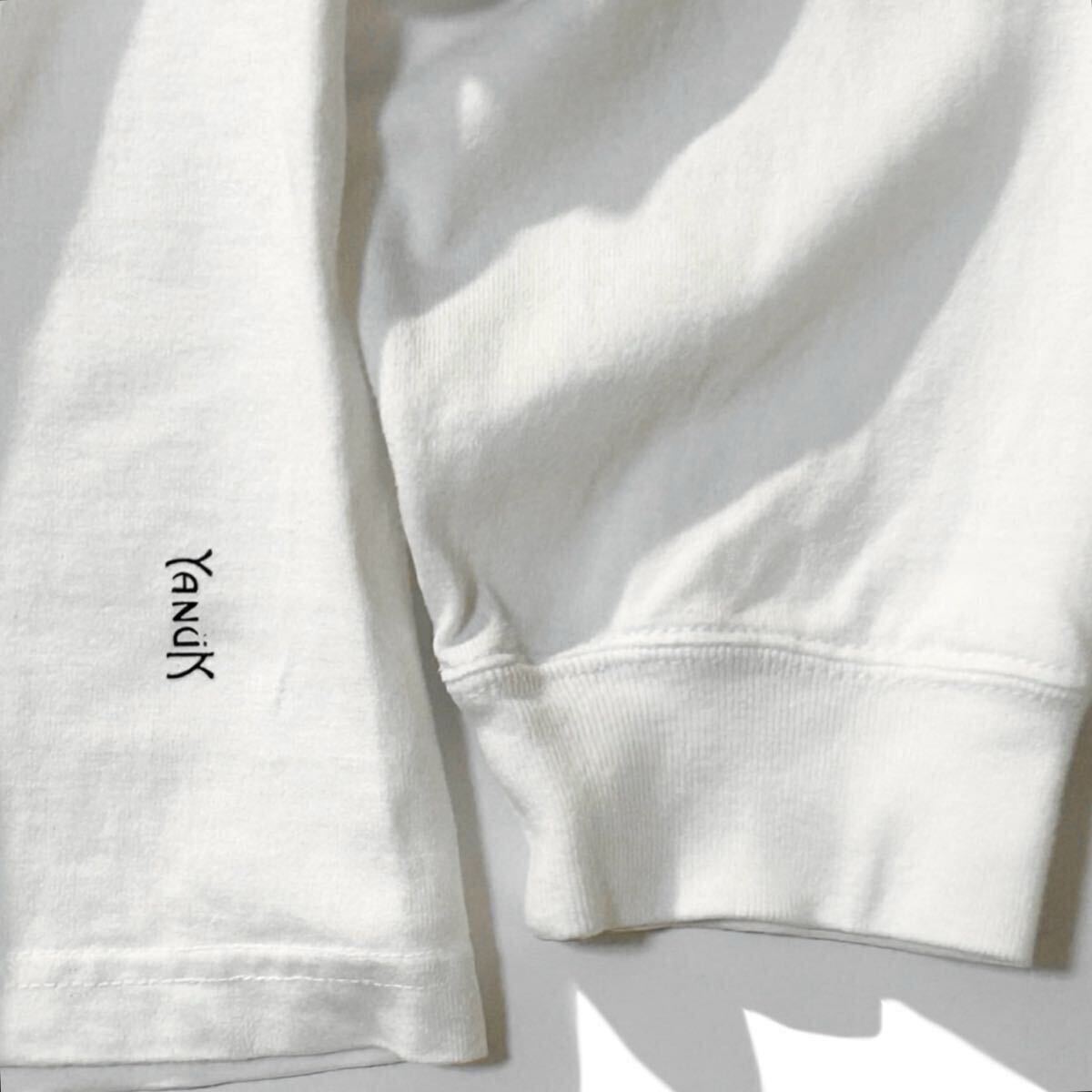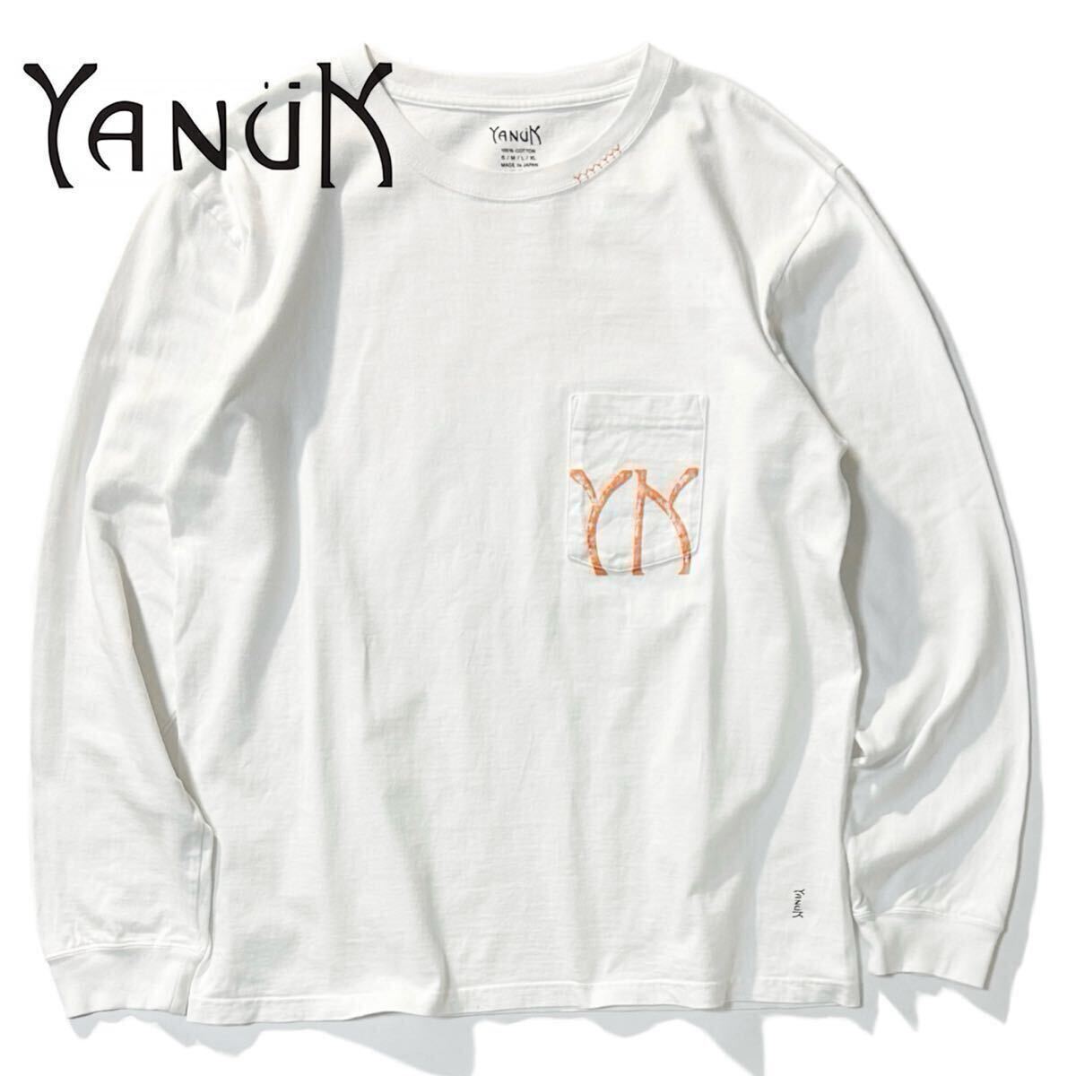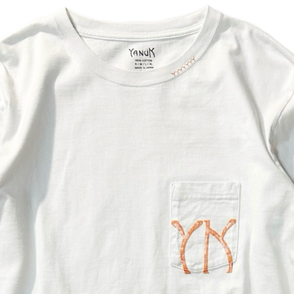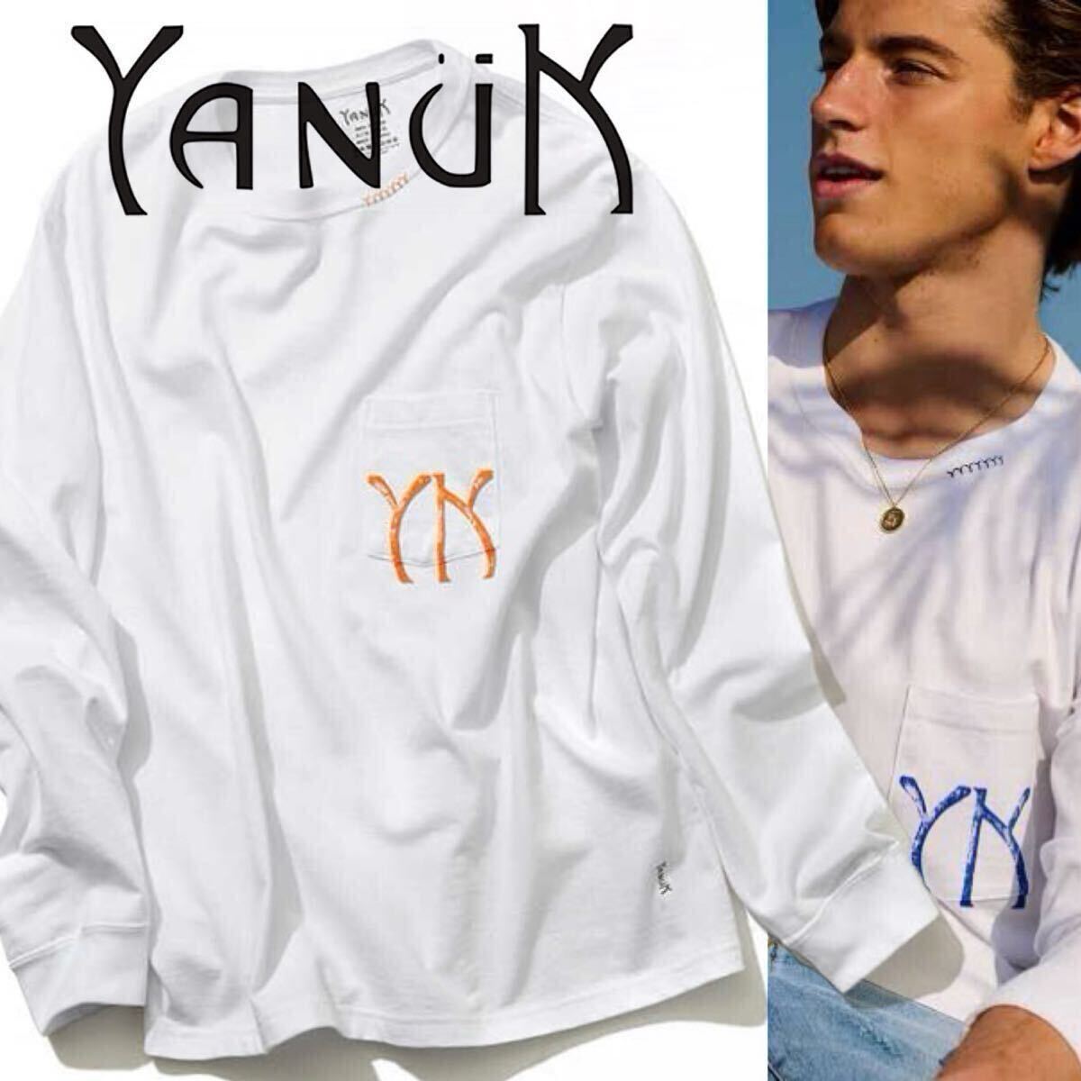上質な素材使いと洗練されたカットワークでL.A.独特のリラックス感を表現するブランド〈ヤヌーク〉から、クルーネックで仕立てたドライな質感の綿天竺に、サンセットからインスピレーションを得たオレンジカラーのイニシャルロゴをプリントした別注L/STシャツです。