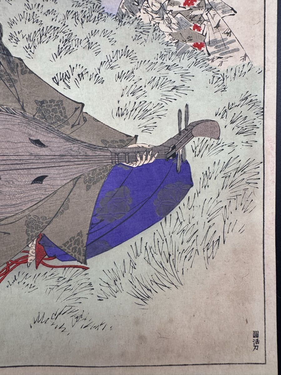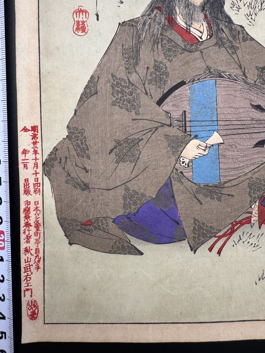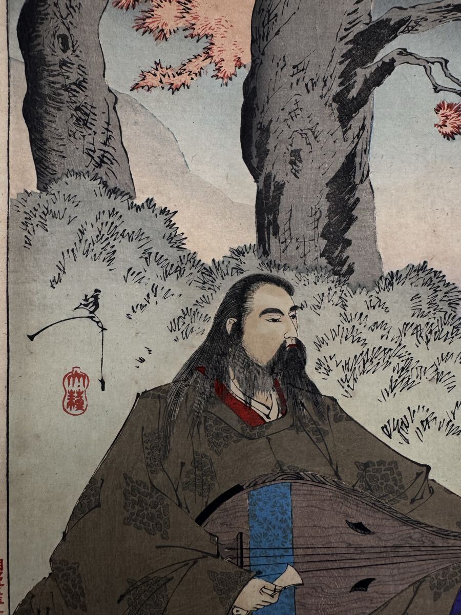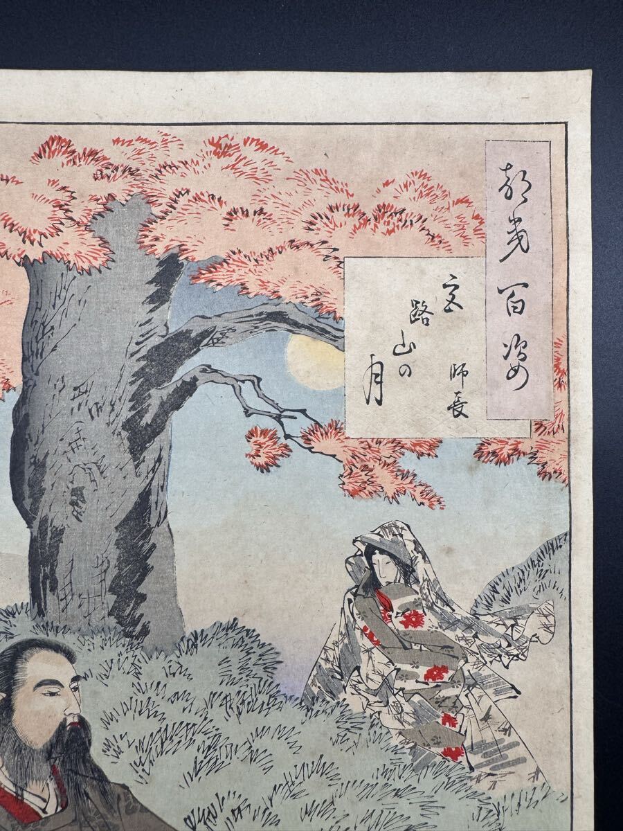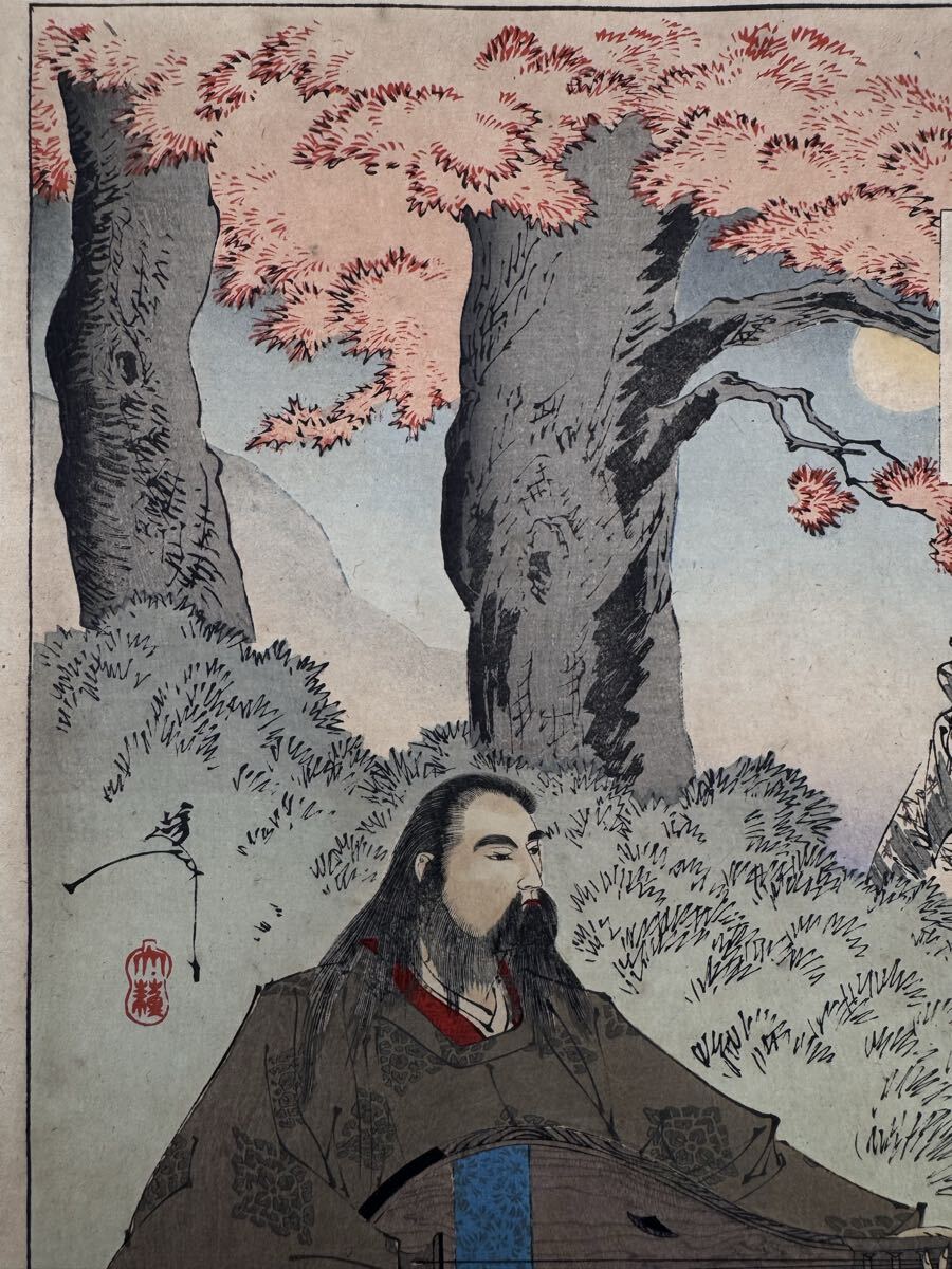 【真作】名作!本物浮世絵木版画 月岡芳年【月百姿 宮路山の月 師長】明治期 武者絵 大判 錦絵 保存良い 裏打ち