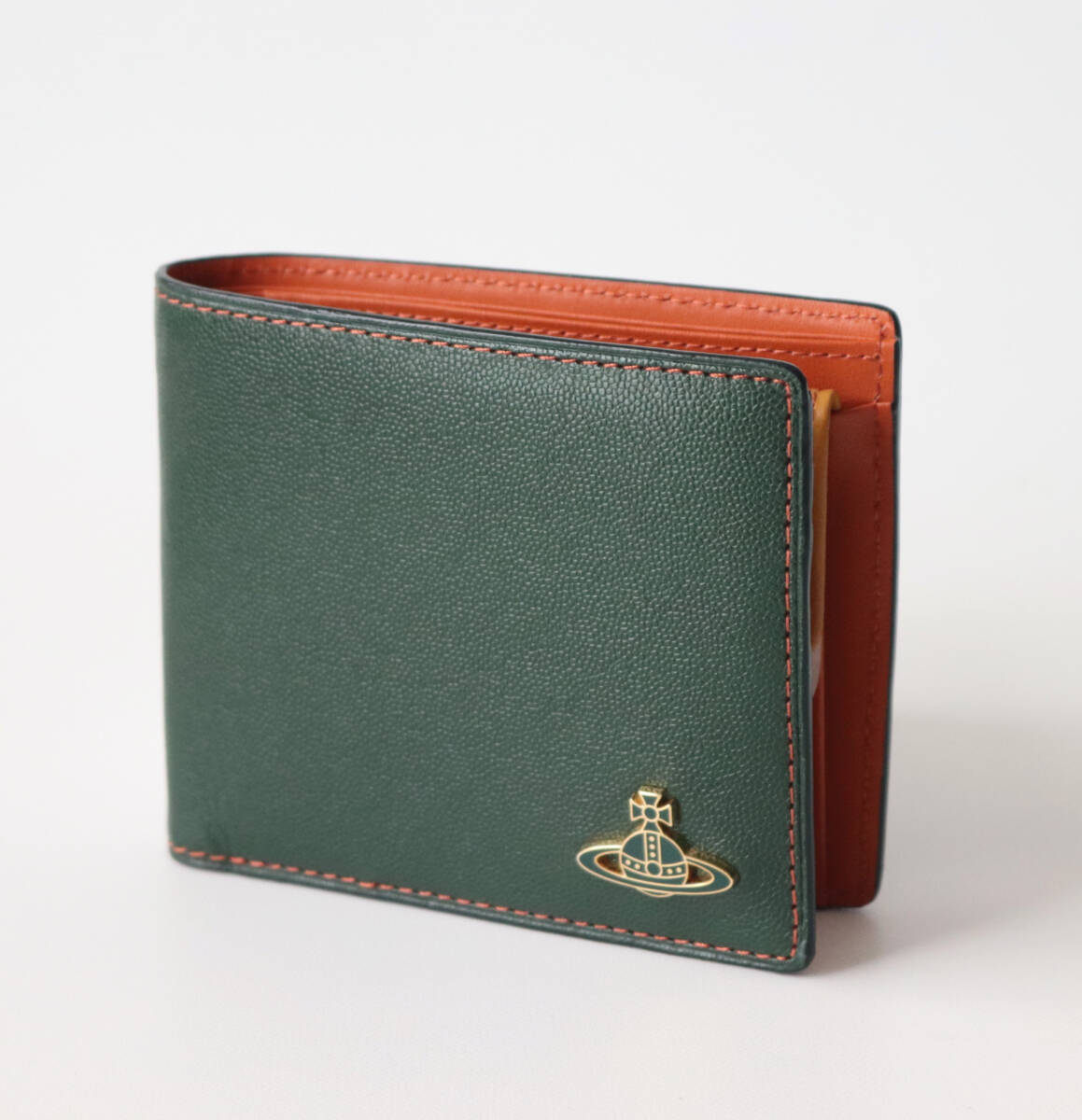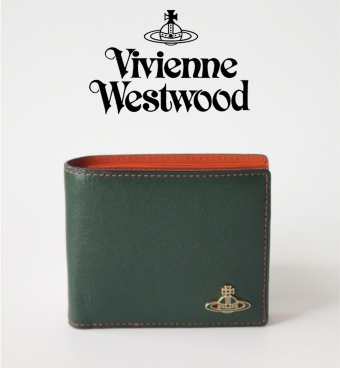 新品箱付き【ヴィヴィアンウエストウッド】カラーブロック 二つ折り財布 グリーン v7561-490-10 プレゼントにも最適 |