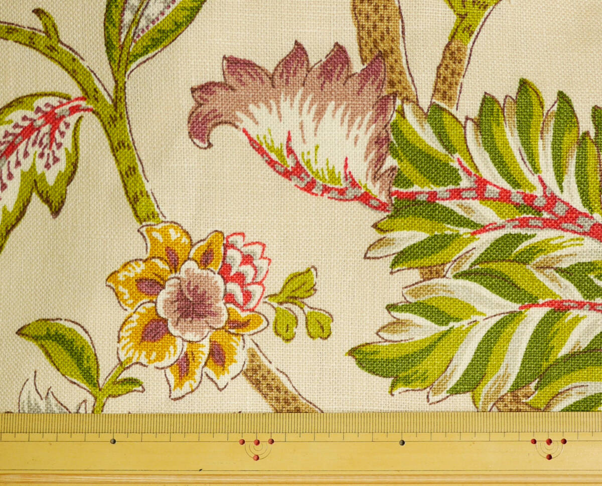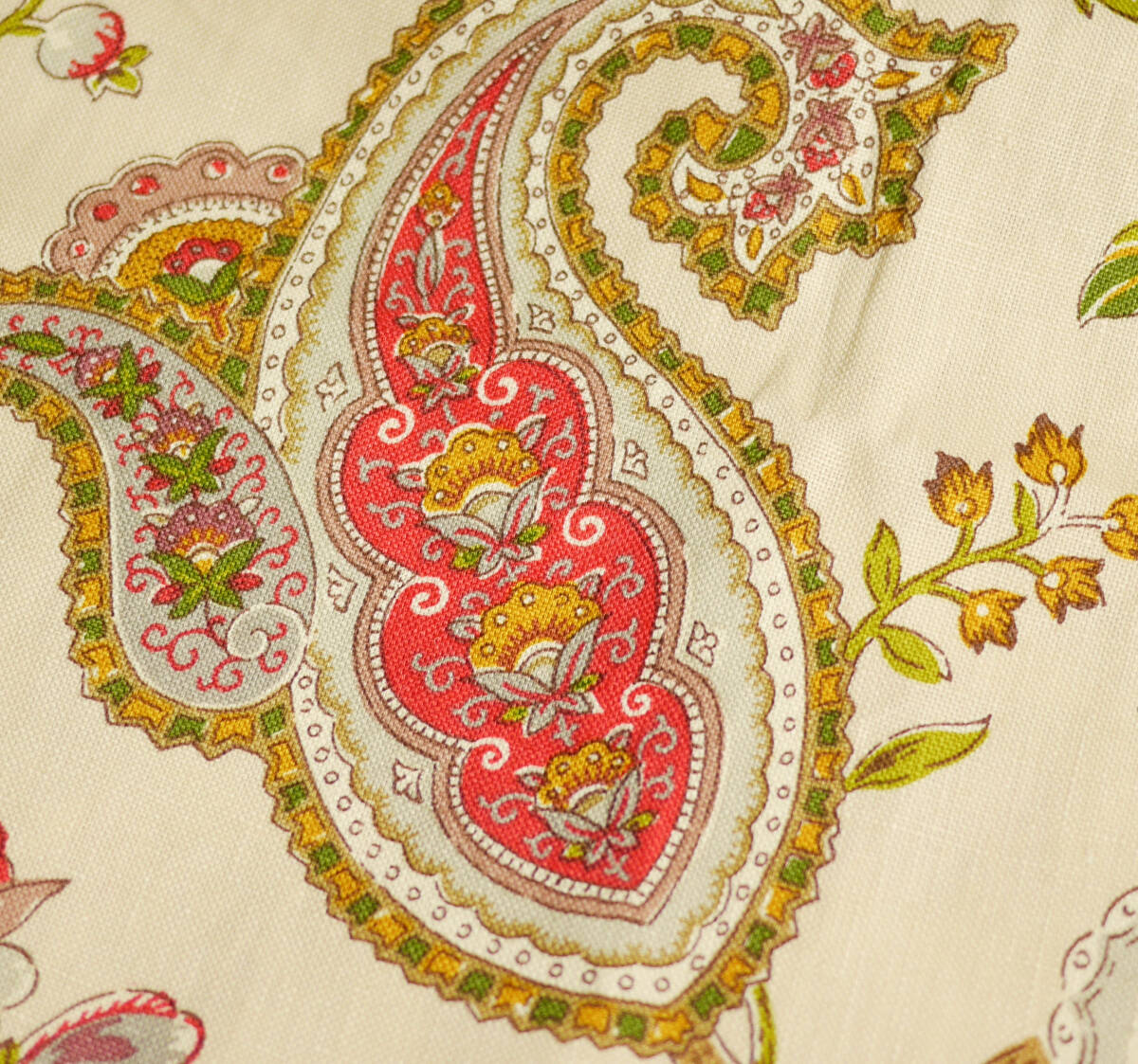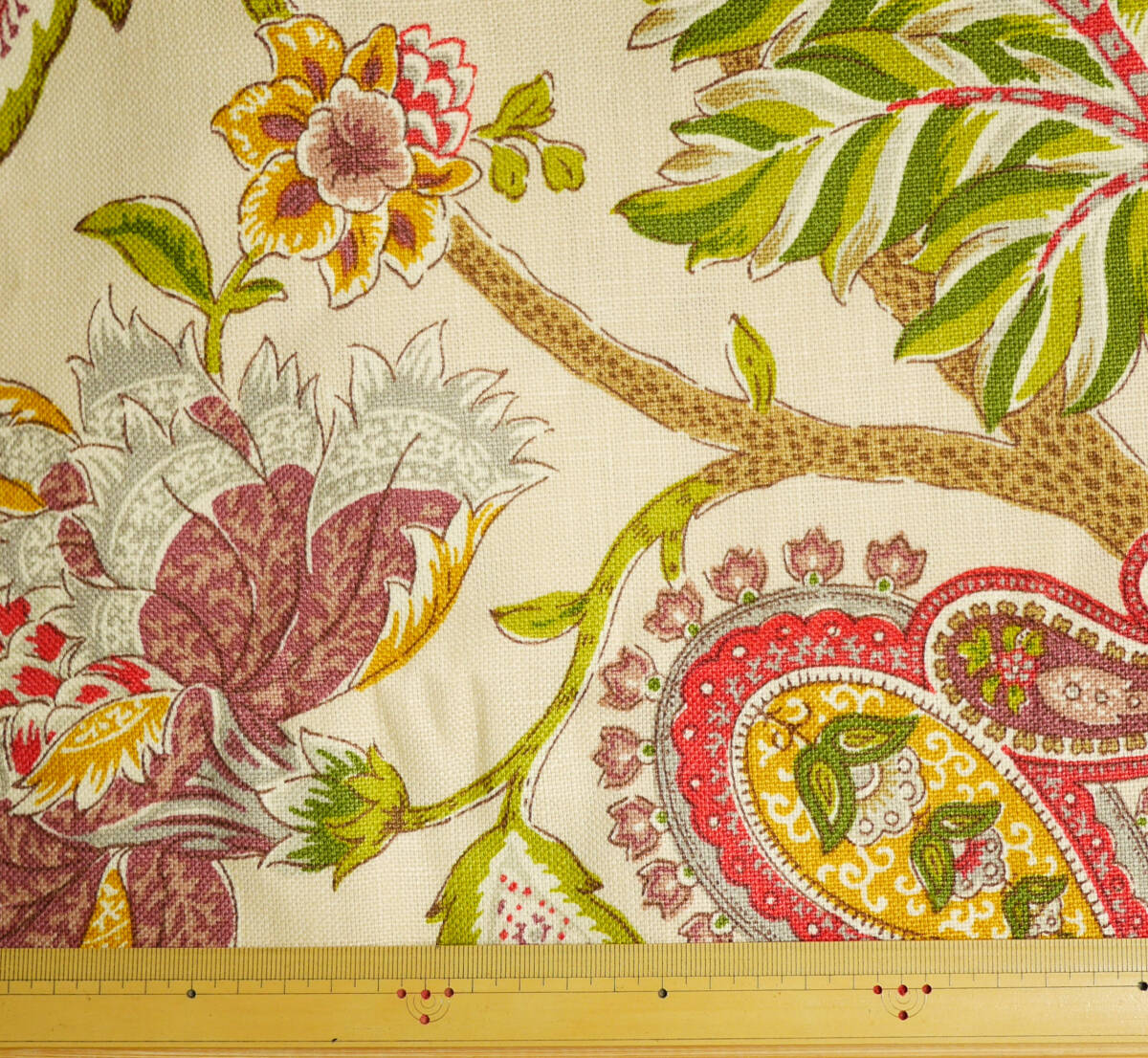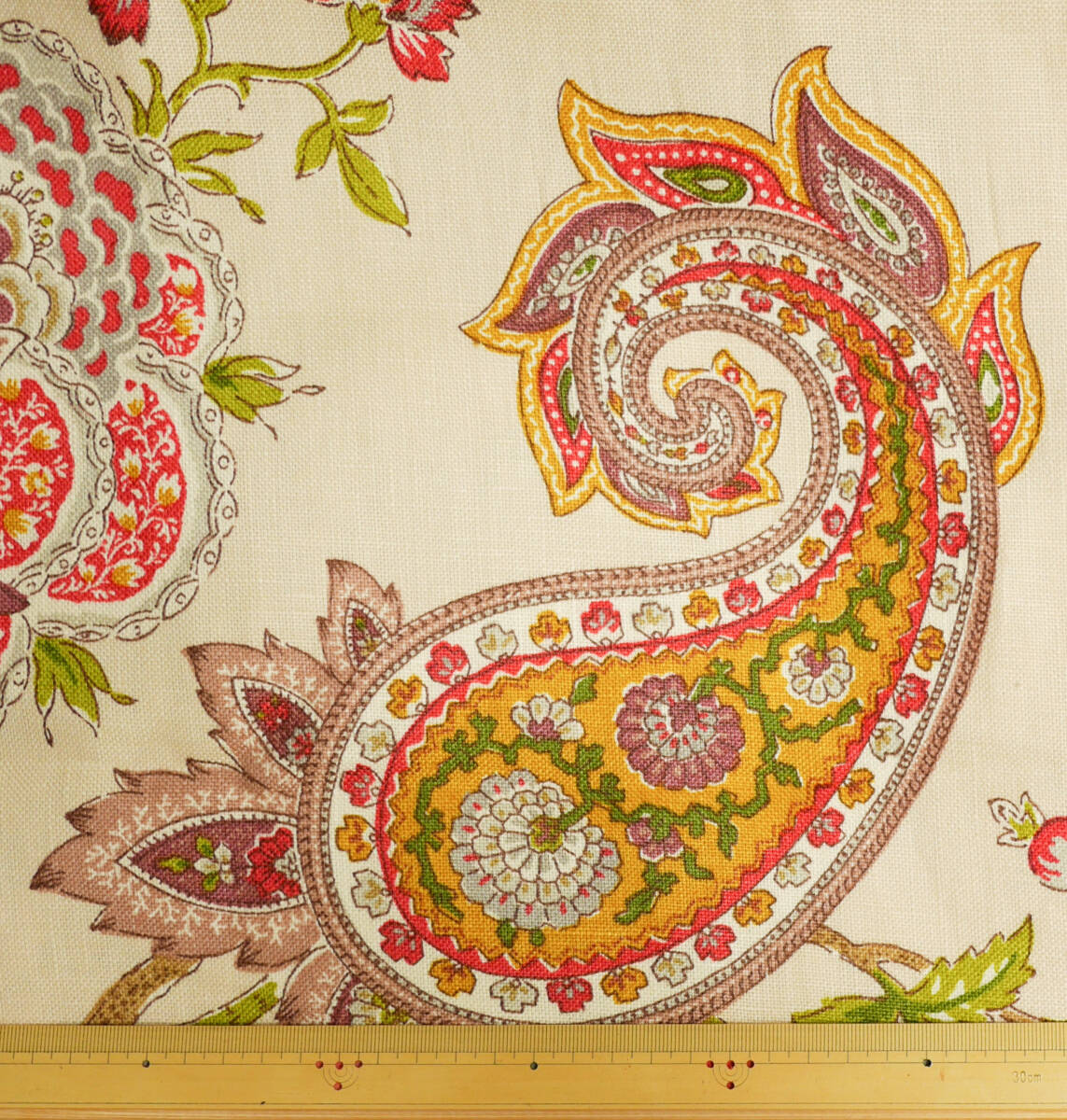 アメリカ リネン生地 花 ペイズリー 80×67 プリント生地 クリーム i はぎれ