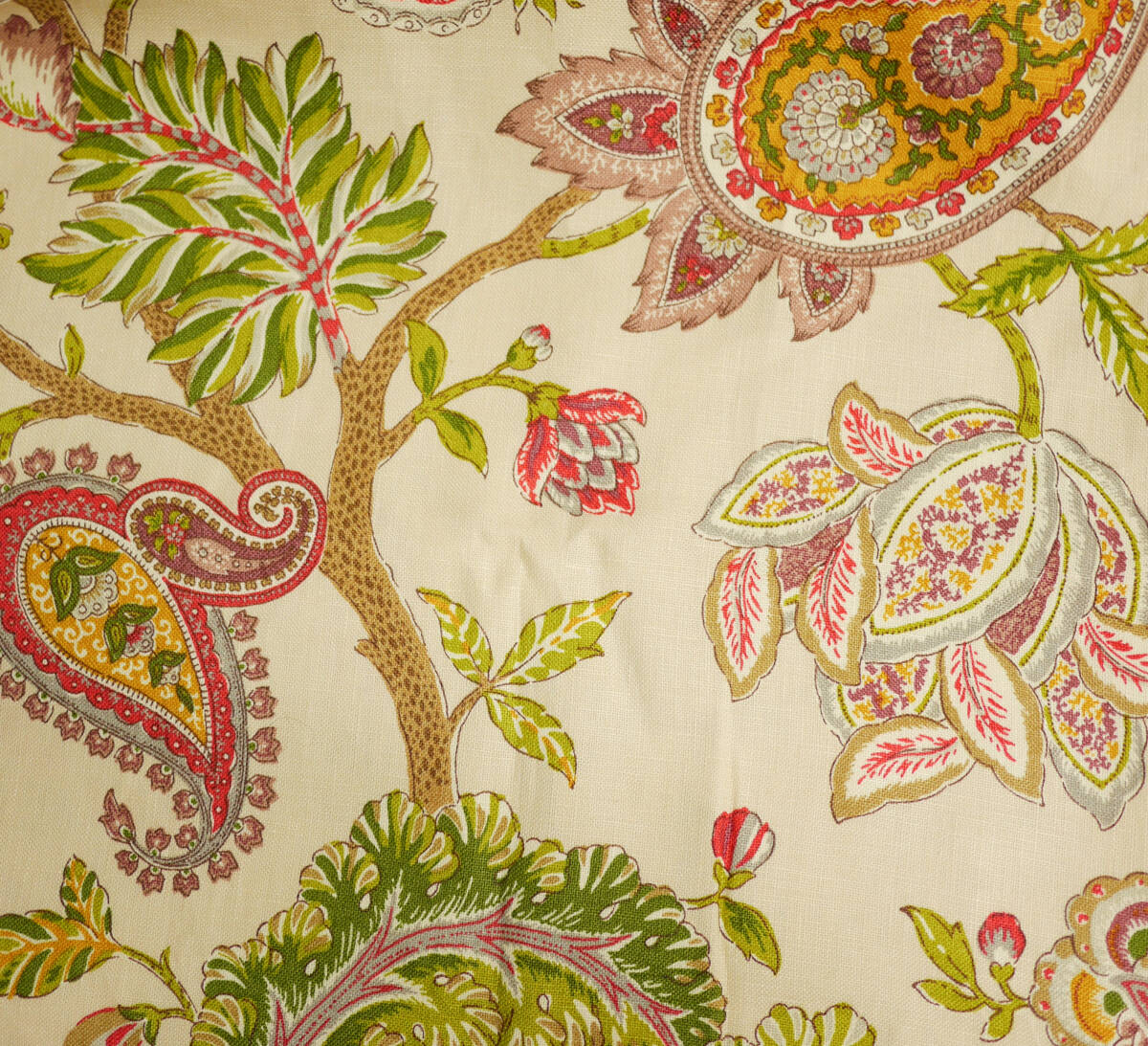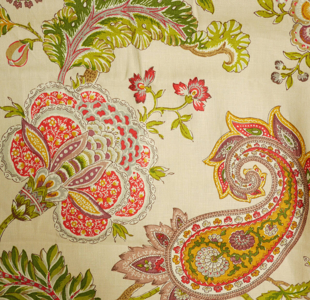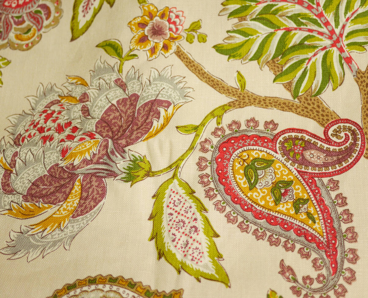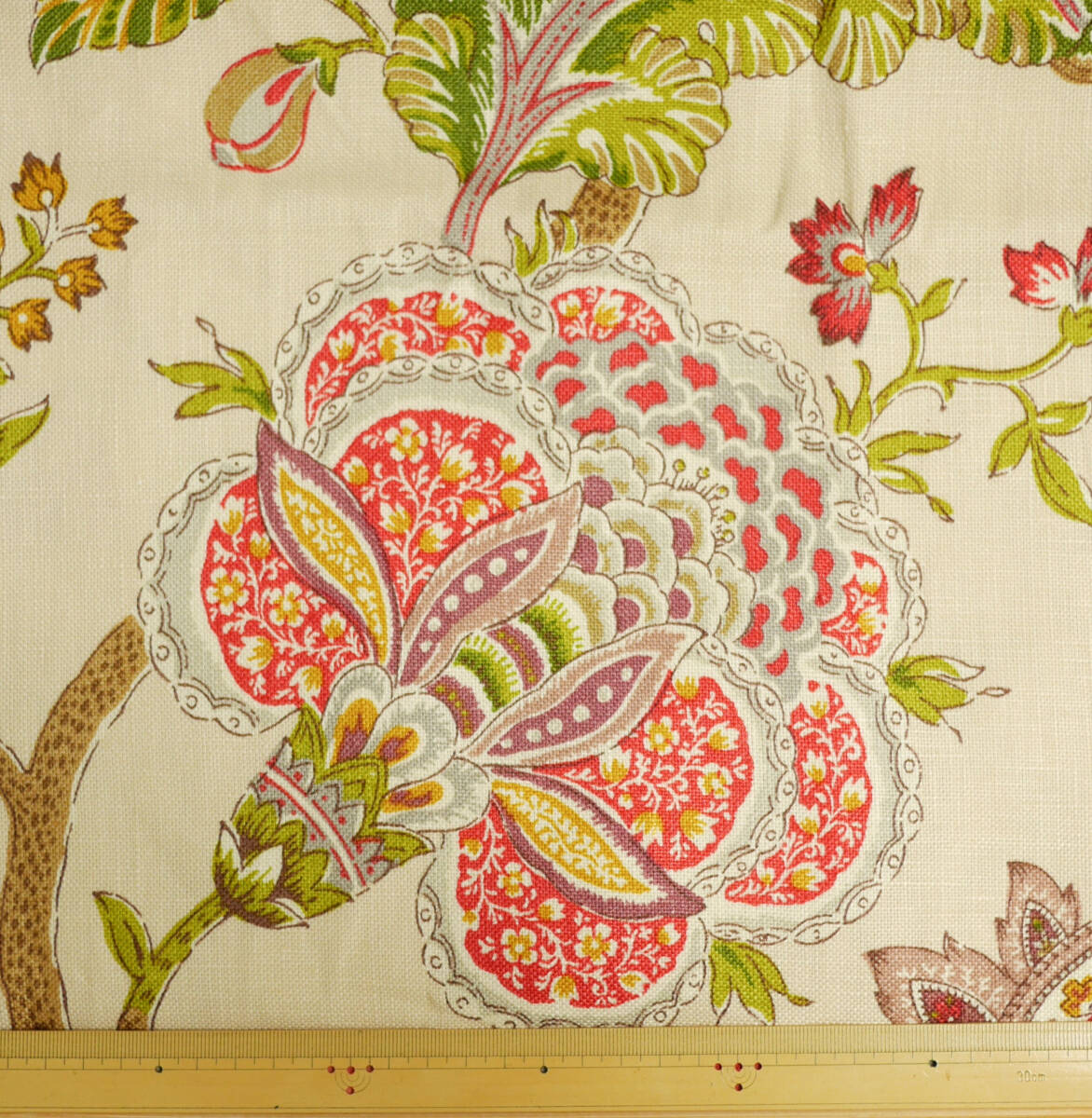 アメリカ リネン生地 花 ペイズリー 80×67 プリント生地 クリーム i はぎれ