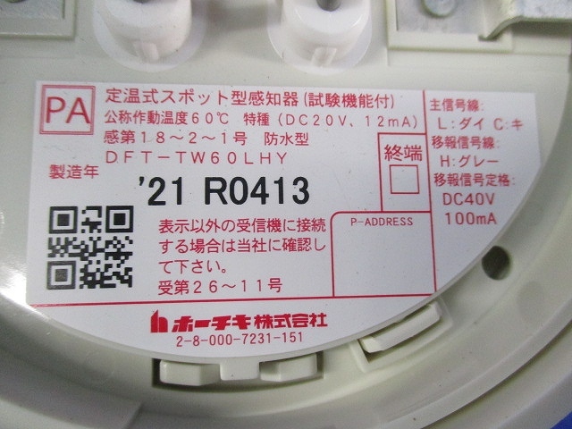 火災報知器 定温式スポット型感知器 ホーチキ DFT-TW60LHY