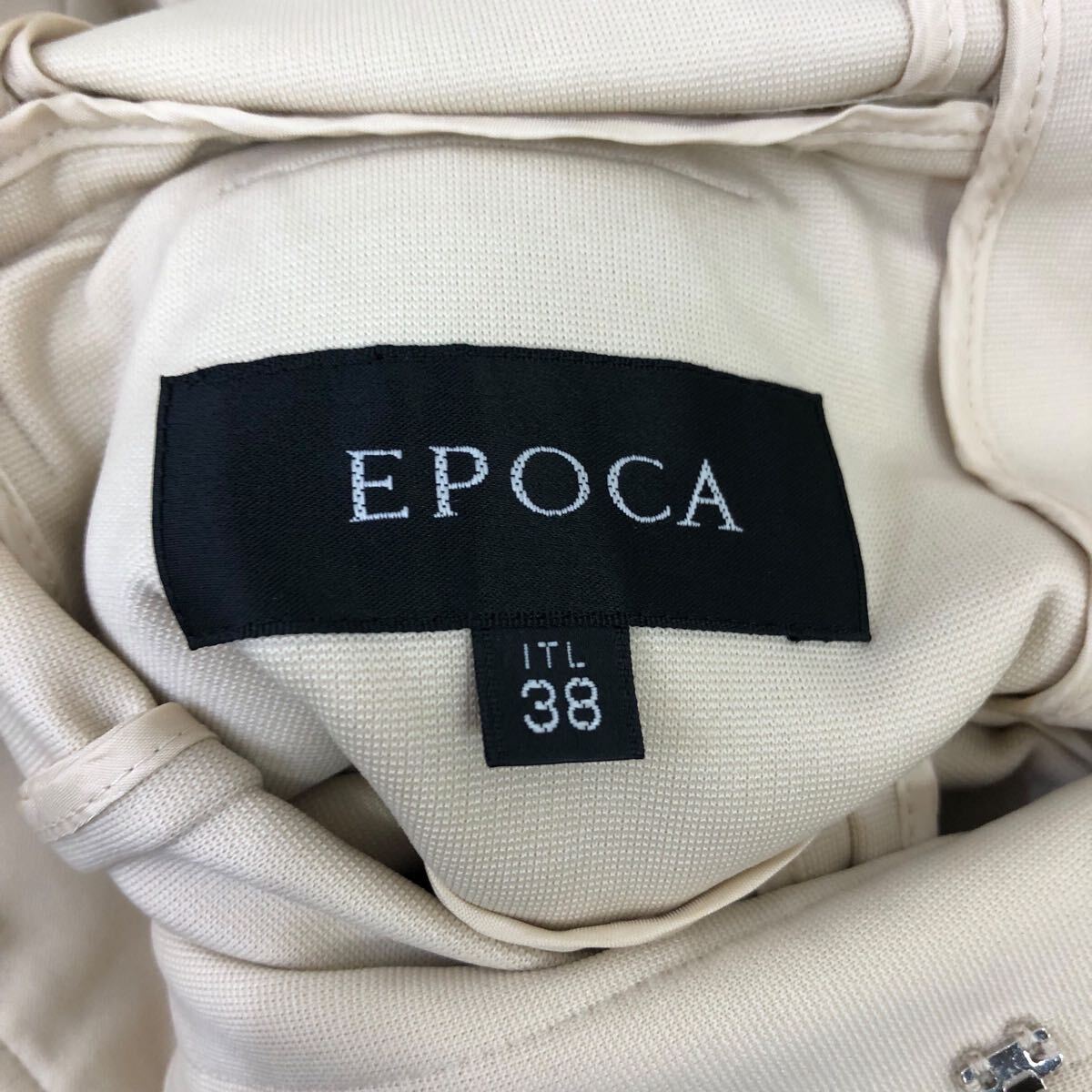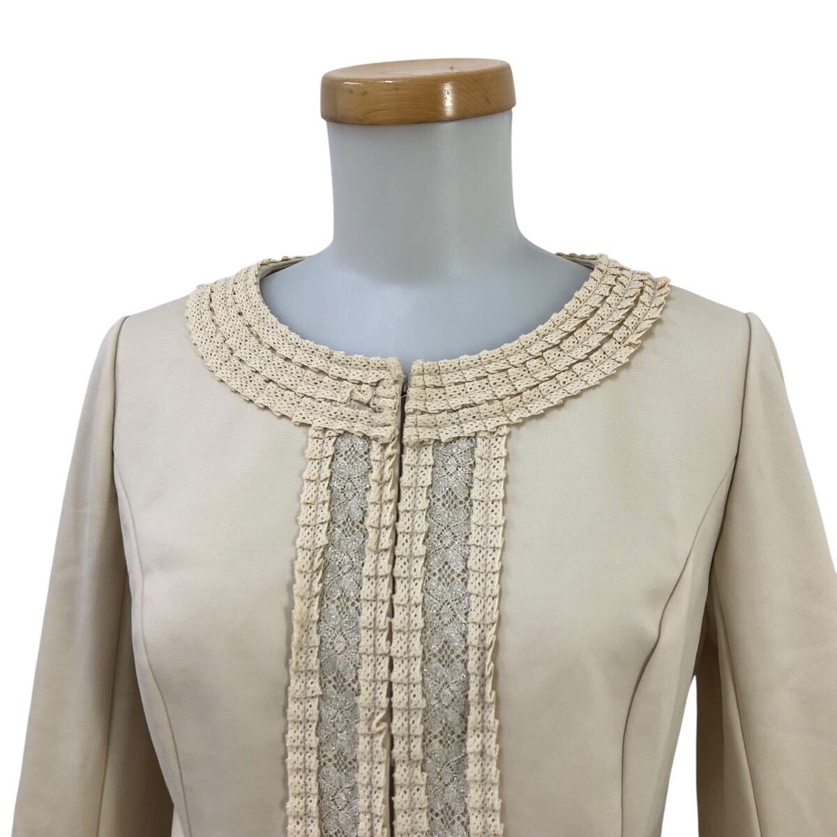 9Nm324-52 EPOCA エポカ レース トリミング ノーカラー ストレッチ 七分袖 ジャケット 上着 羽織り アウター ベージュ レディース 38
