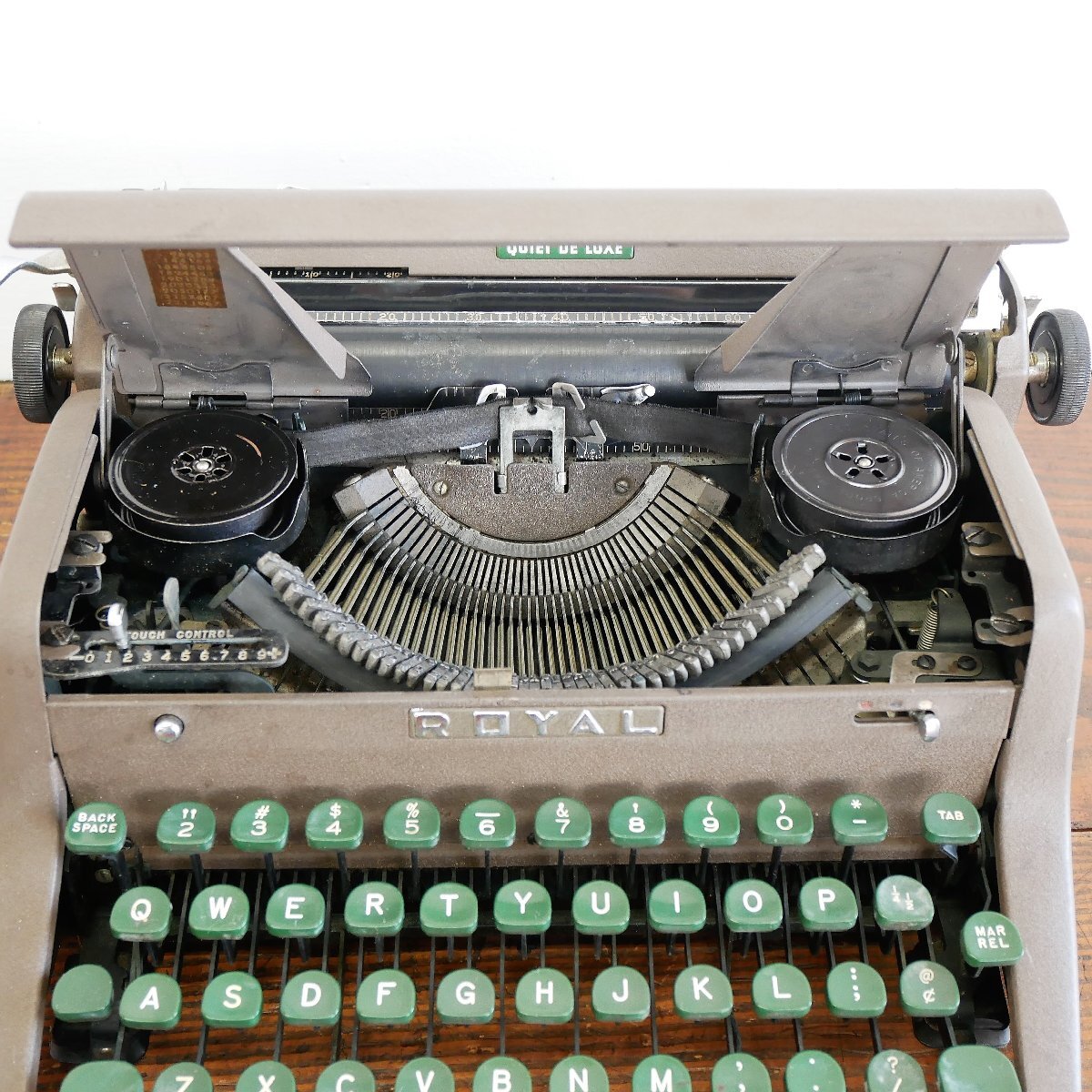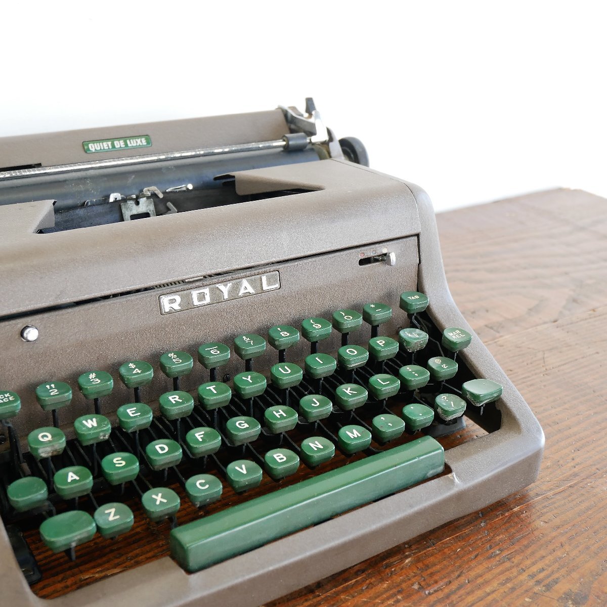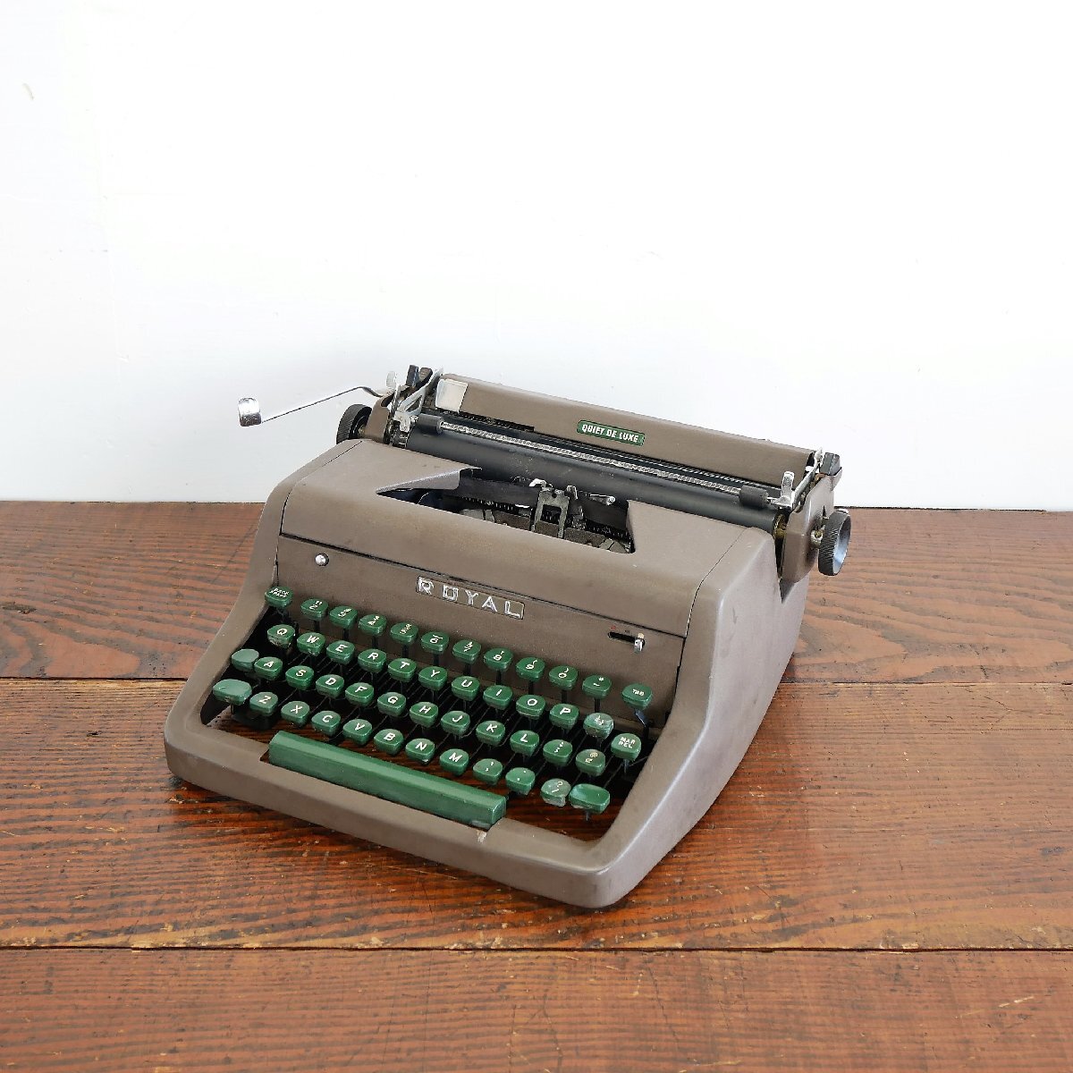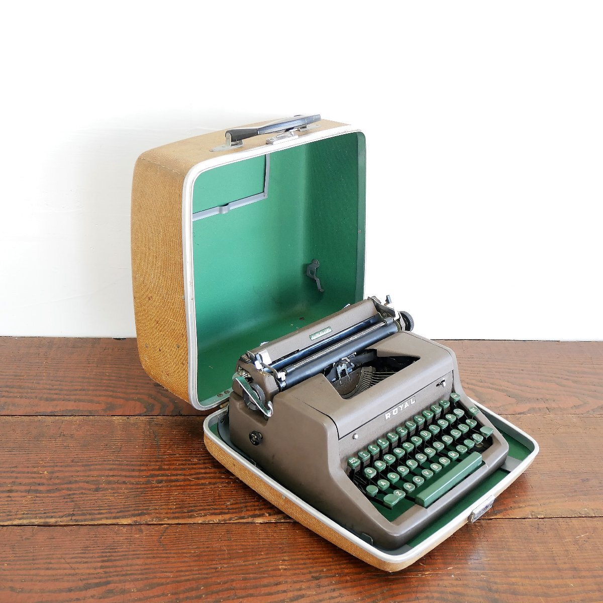 商品説明 explanation | 1950年代に製造された【ロイヤル タイプライター カンパニー】のタイプライターです。 あまり見かけないグリーンキーで、タイピングはわりとスムーズです。 ただし、リボンが劣化しているため実用可能かどうか確認ができません。 実際にご使用になる場合は専門の業者様にメンテナンスをご依頼ください。 雰囲気はとても良く、ディスプレイ小物に最適です。 |