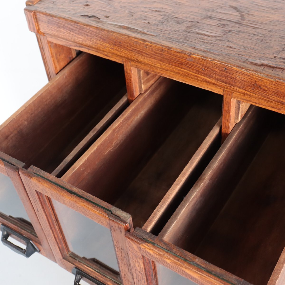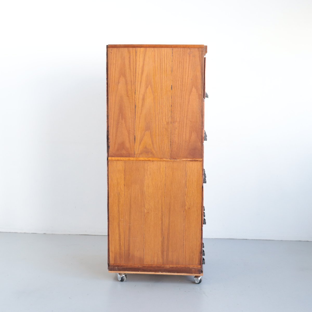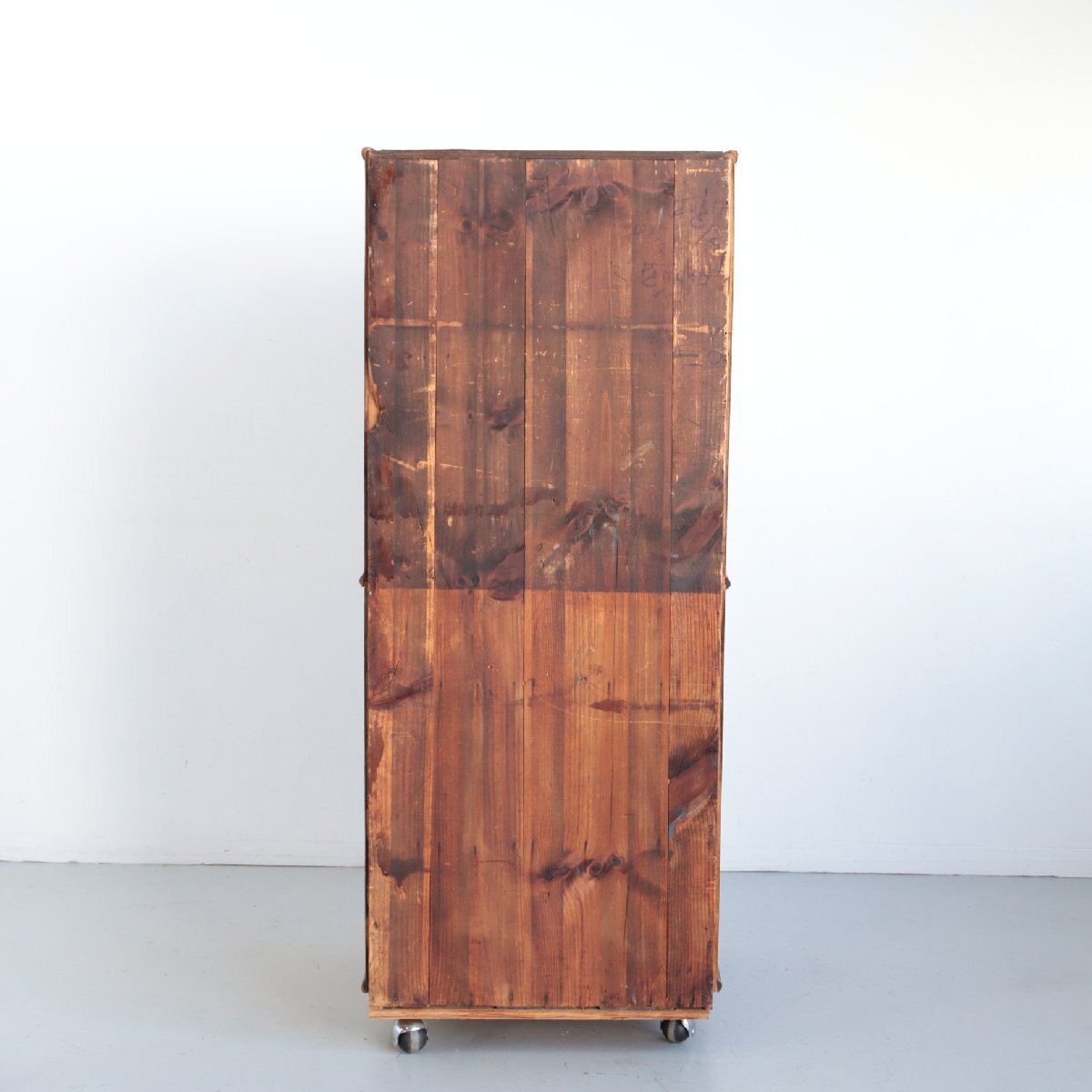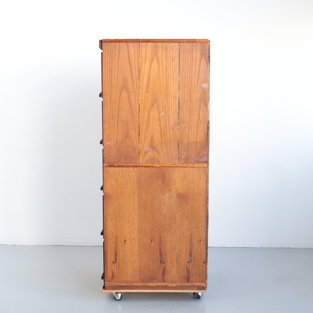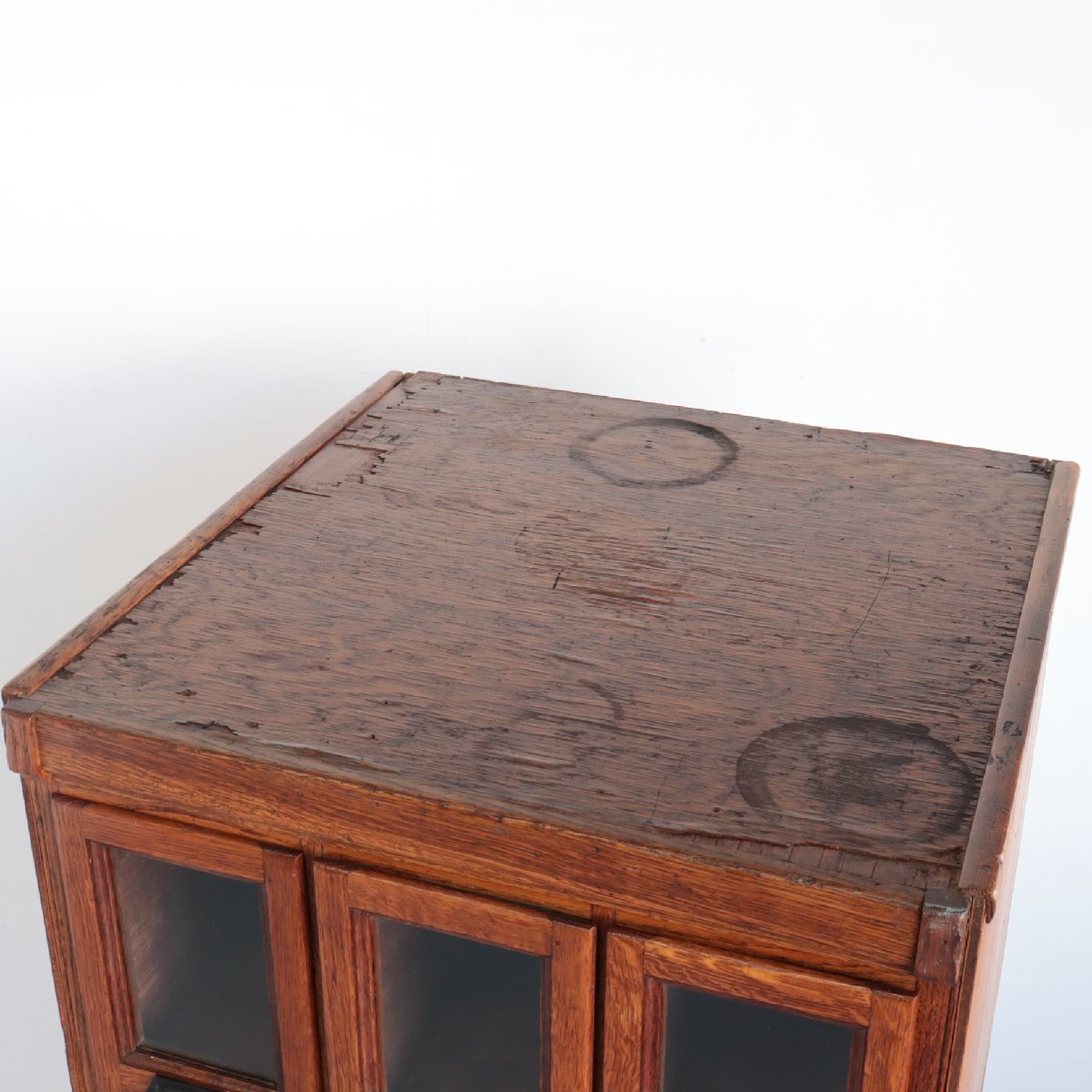 商品説明 explanation | 推定1920年~1930年頃のディスプレイキャビネットです。 当時、ショップでお菓子のディスプレイ・販売に使われていたモノのようです。 この年代特有の、荒々しさのあるオーク材の木目は重厚感があり、非常に良い雰囲気です。 ご自宅や店舗什器にいかがでしょうか。 ※台車に載せて撮影しています。 ※ガラスは反射よって黒く見えますが、透明です。 |