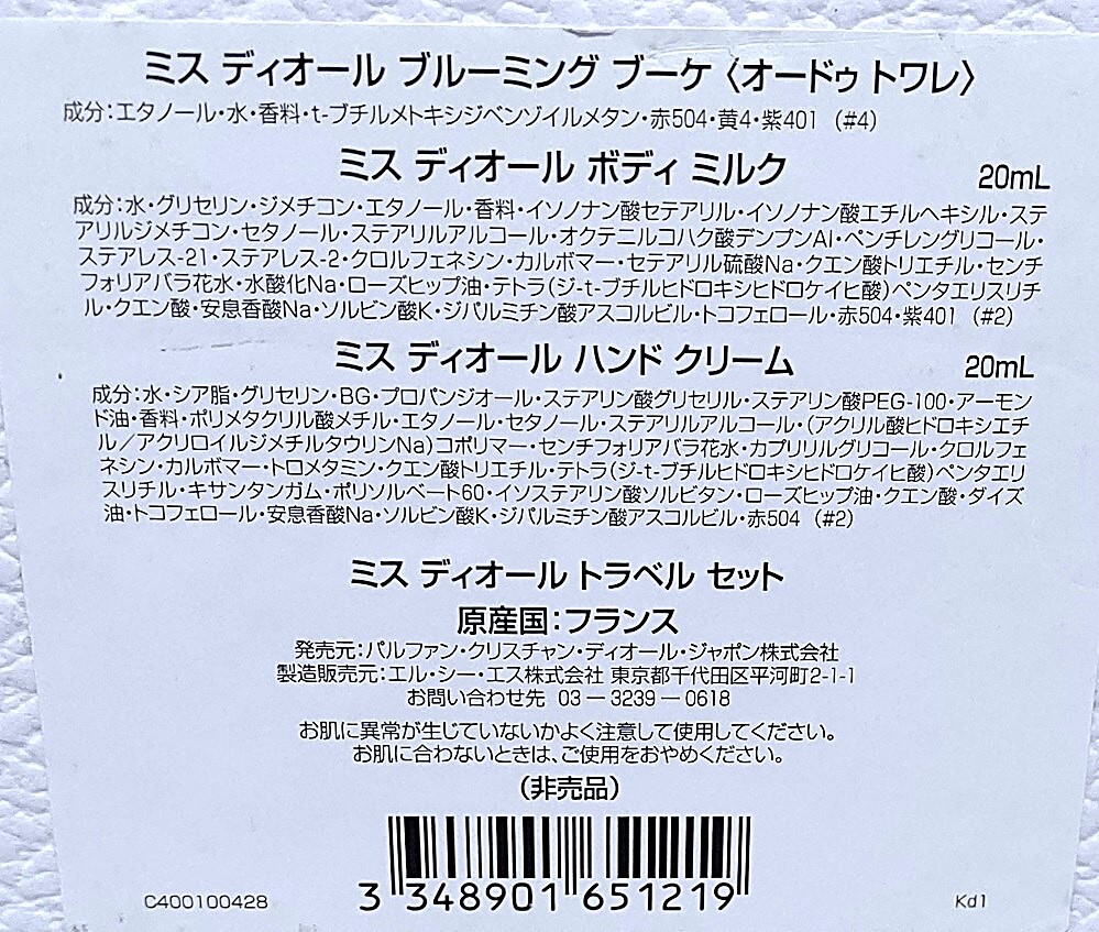 ディオール から、ノベルティ ミスディオール トラベルセット