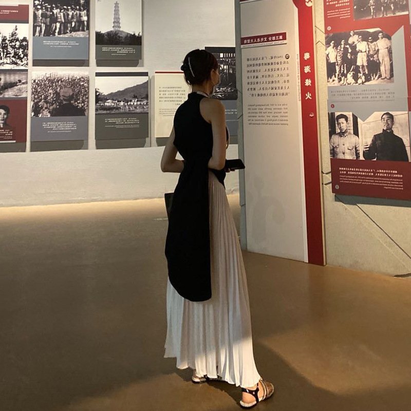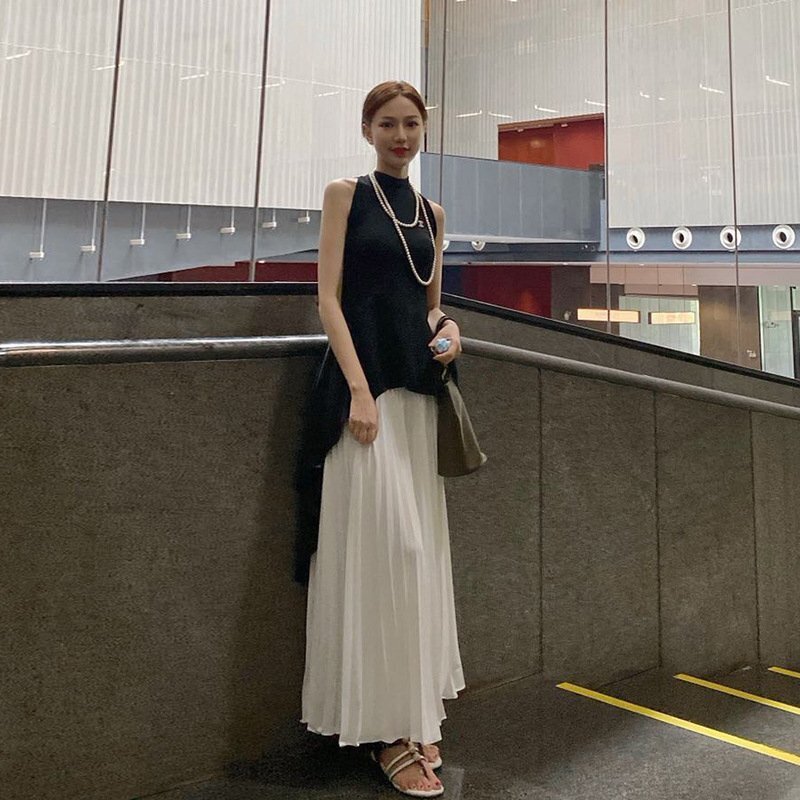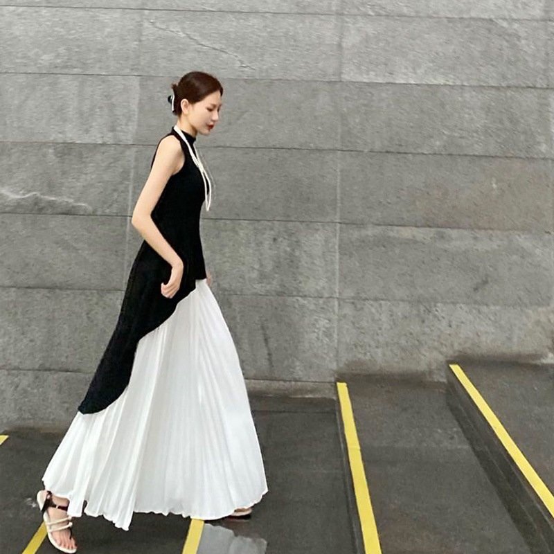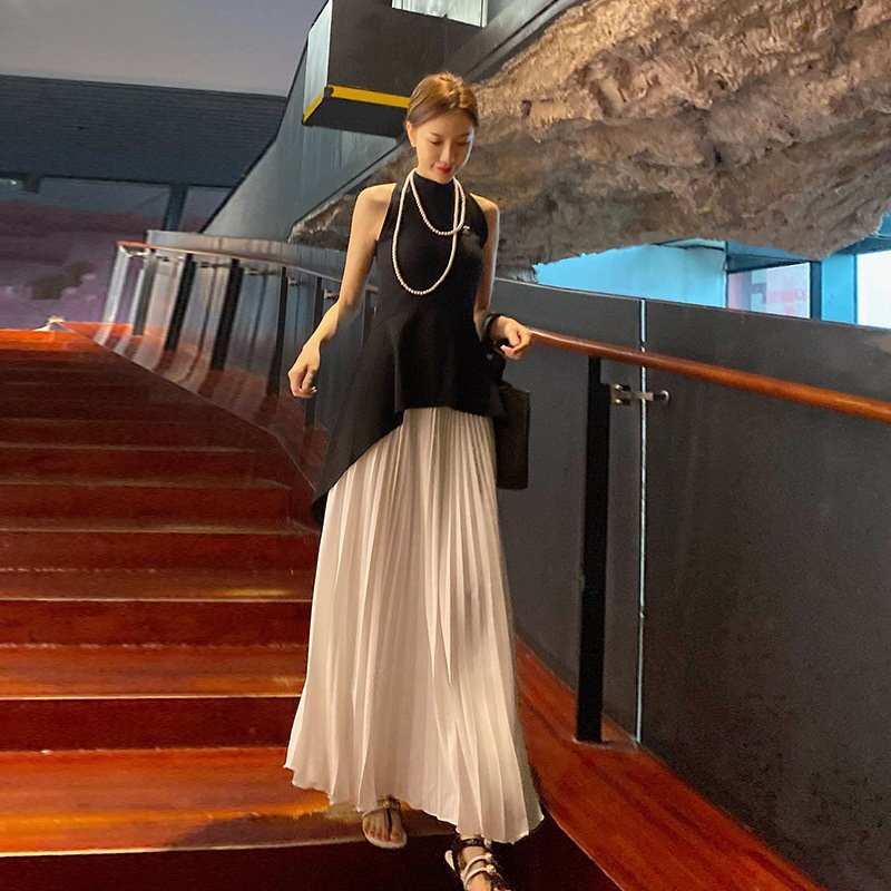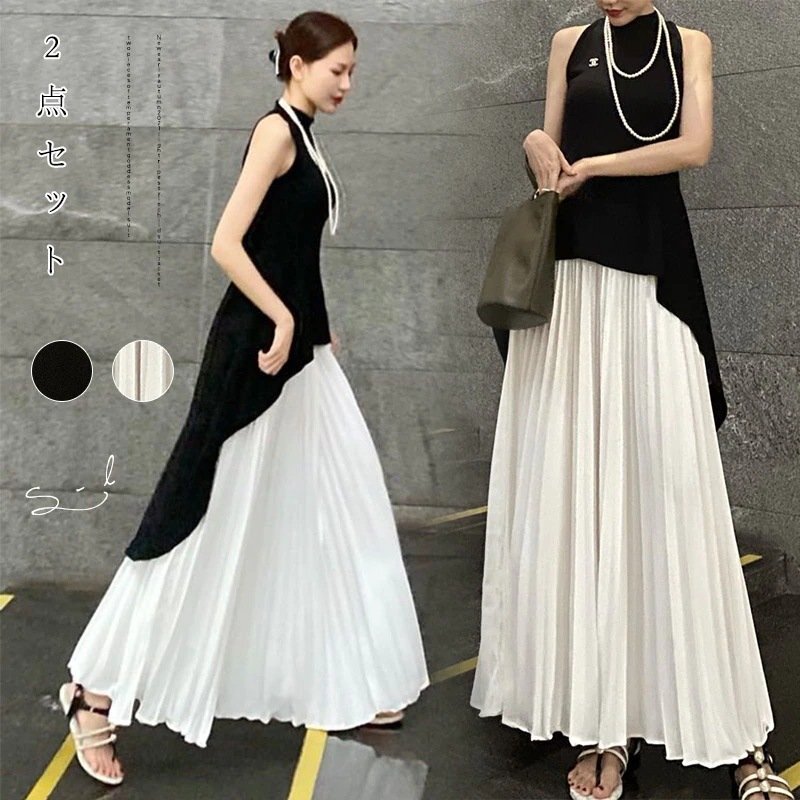 レディース プリーツスカート ハーフスカート + tシャツ 2点セット 美脚 体型カバー夏 上品 普段着 ★Lサイズ