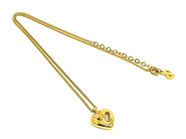 1円 ■美品■ ChristianDior クリスチャンディオール ハート ネックレス ペンダント アクセサリー レディース ゴールド系 FT1173