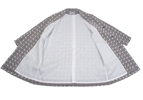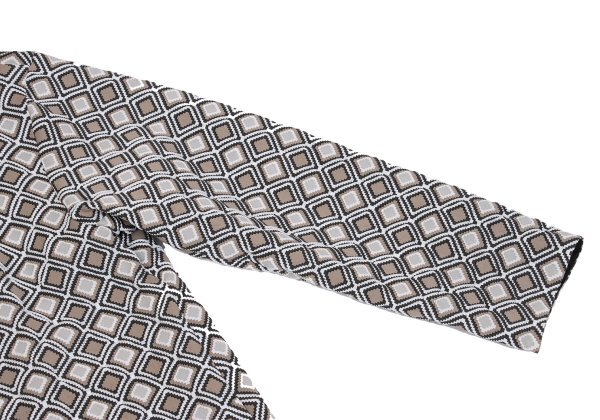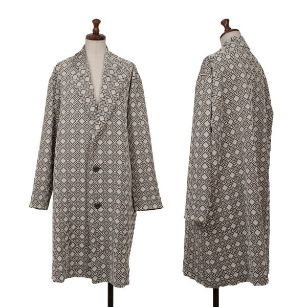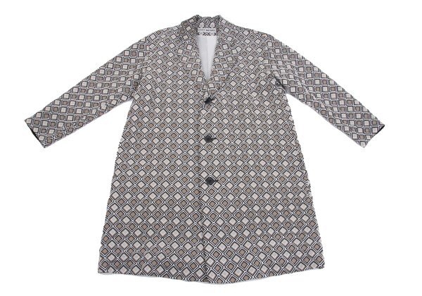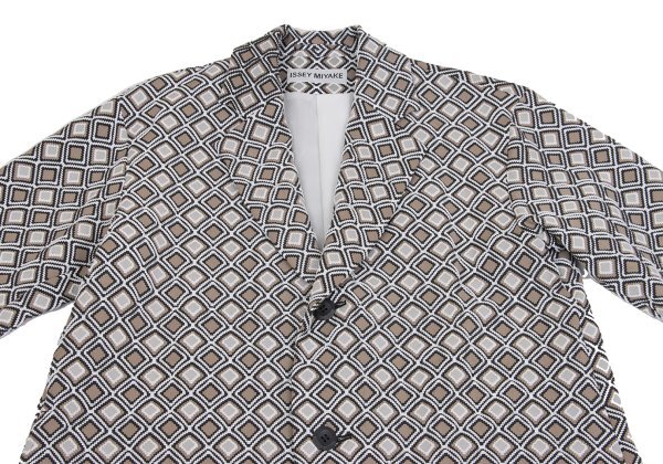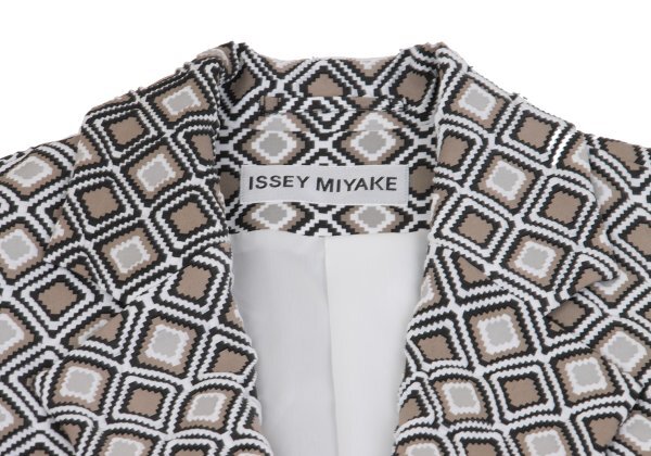 イッセイミヤケISSEY MIYAKE 幾何学エンボスデザインロングジャケット モカ黒白2 |
