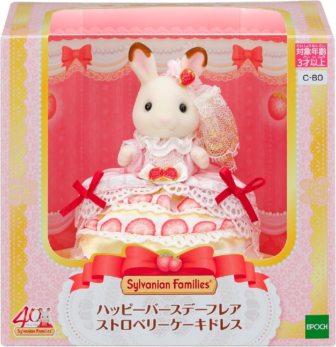 ■ショコラウサギの女の子は、ストロベリーケーキをモチーフにした豪華なドレスを着ています。