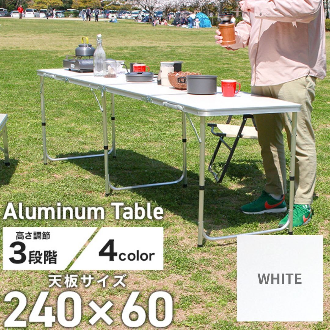 かんたん組立の折りたたみアウトドアテーブルです。 広々サイズの240cm×60cm!! サビに強いアルミを使用! 天板には防水加工が施されています。 必要のない時は折りたたんで収納できる!! 取っ手付きで持ち運びもラクラク♪ 高さは「ハイスタイル」「ミドルスタイル」「ロースタイル」の3段階調節。 お好みや用途に合わせて使い分けることができる嬉しい仕様♪ キャンプ、バーベキュー、お花見などにとても便利! ■商品コード:A61 ■商品仕様 カラー:ホワイト テーブルサイズ(約):幅240cm×奥行60cm×高さ55cm/62cm/70cm(※高さ3段階調節) 収納サイズ(約):60cm×60cm×13cm 耐荷重(約):30kg 重量(約):9.5kg 材質:アルミニウム 他 ■注意事項 ・初めてご使用の場合、耐久性を高めるために天板がフラットにならず山なりになっております。 適度な力で上から押していただくと改善されますので、お試しください。初期不良ではございません。 ・海外製品で、簡易梱包での輸入のため風防に擦れや多少の小キズなどがある場合がございますが、 商品自体には問題ありませんのでご了承下さい。 ・商品は、モニターによって色合いが異なって見える場合があります。 ・仕様・デザインは改良のため予告なく変更することがあります。 ■保障期間 7日間 ※商品到着後7日以内の初期不良・破損のみご対応させていただきます。 【新品未使用品です】 |