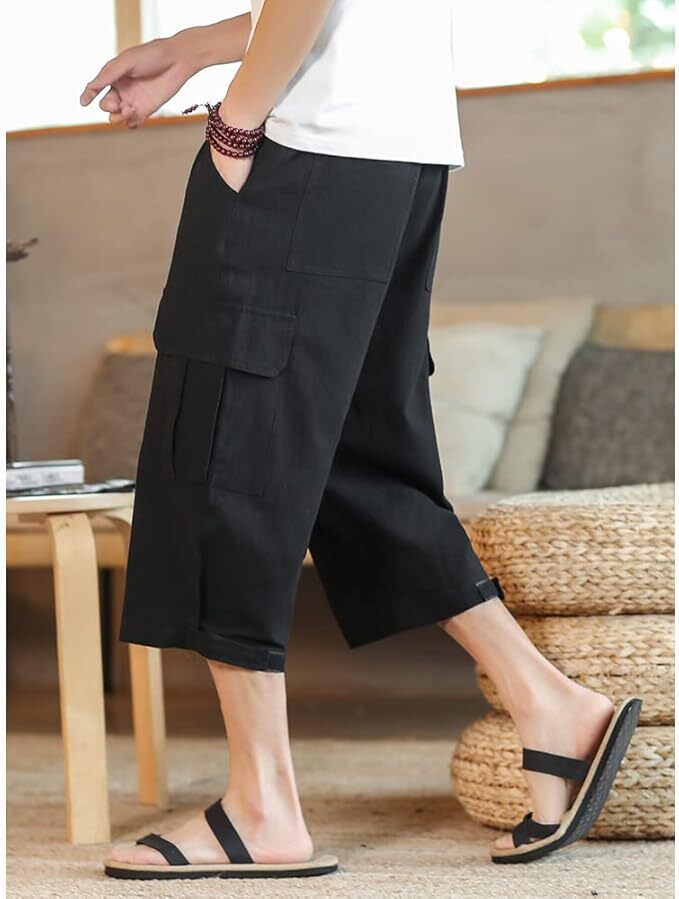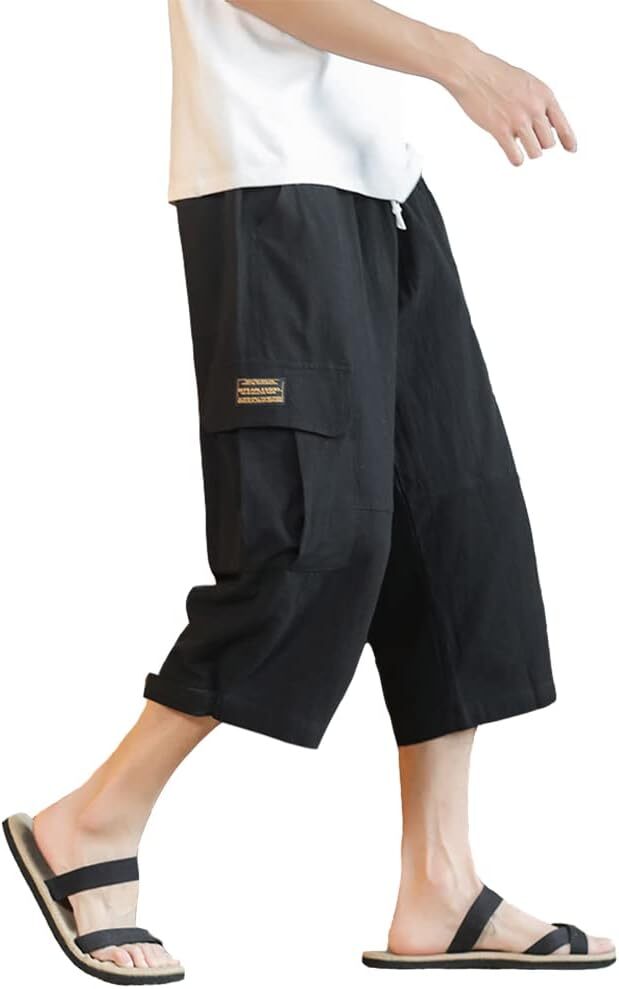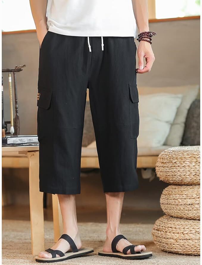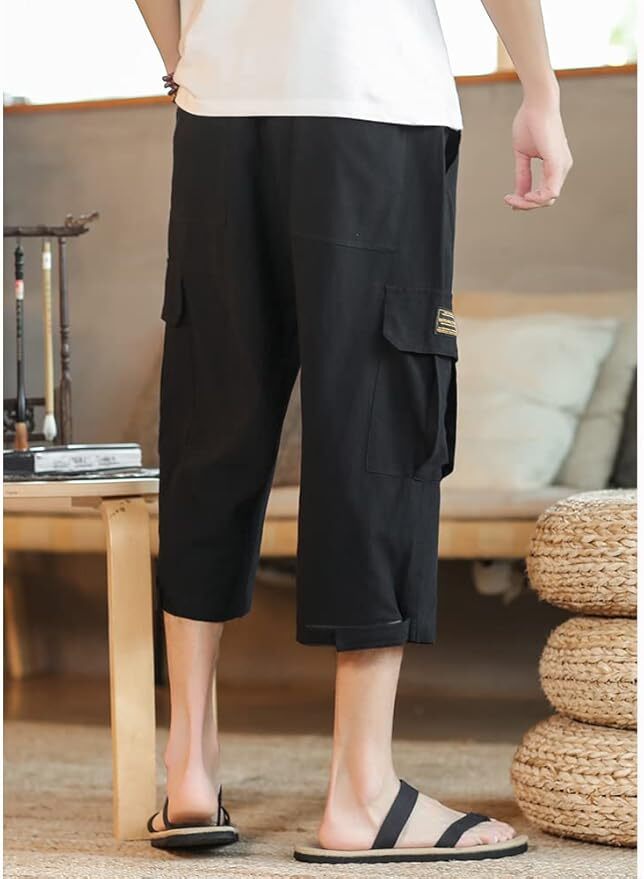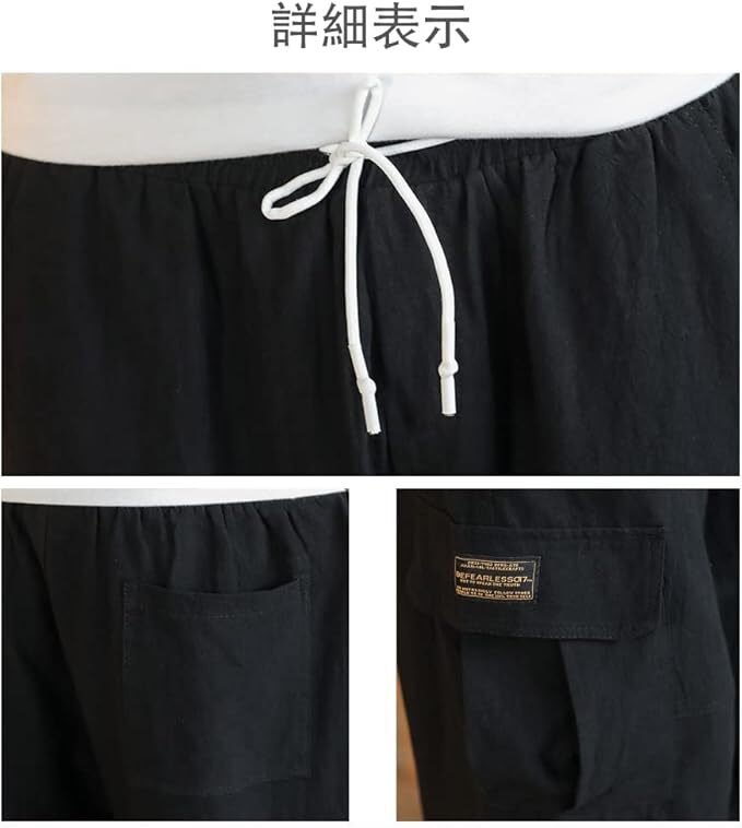ブラック色 2XLサイズ 大きいサイズ Poperdision ハーフパンツ メンズ 半ズボン カーゴパンツ ショートパンツ クロップドパンツ