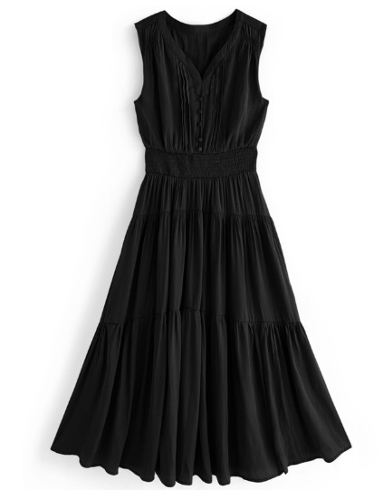 グレイル GRL シャーリングティアードワンピース ワンピース  ノースリーブ ロング  黒  L