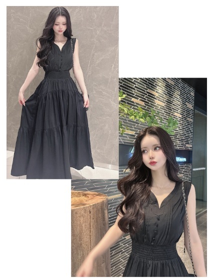 グレイル GRL シャーリングティアードワンピース ワンピース ノースリーブ ロング 黒  L  タグ付き 試着のみ