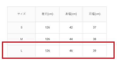 サイズ:L 2799円(定価) (着丈:126cm 身幅:46cm 肩幅39cm(HPより)