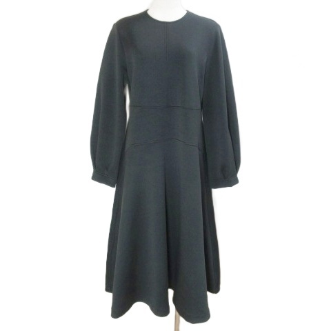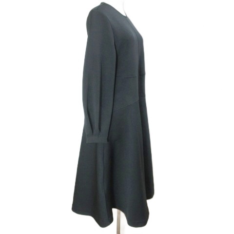 シップス カランシエル QUARANCIEL 24AW ダブルジャージー フレア ミディ ワンピース 長袖 ウォッシャブル フリーサイズ 黒 ブラック X