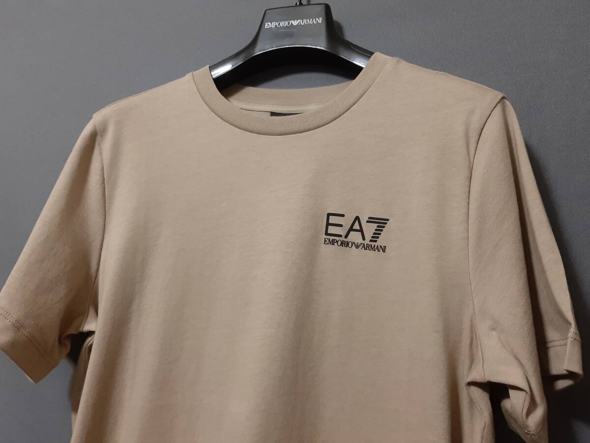 [新品] 10A(10歳) EA7 / ARMANI JUNIOR ワンポイントロゴ入り【半袖Tシャツ】◆2025年春夏モデル 男の子用 140cm ◆色:モカ