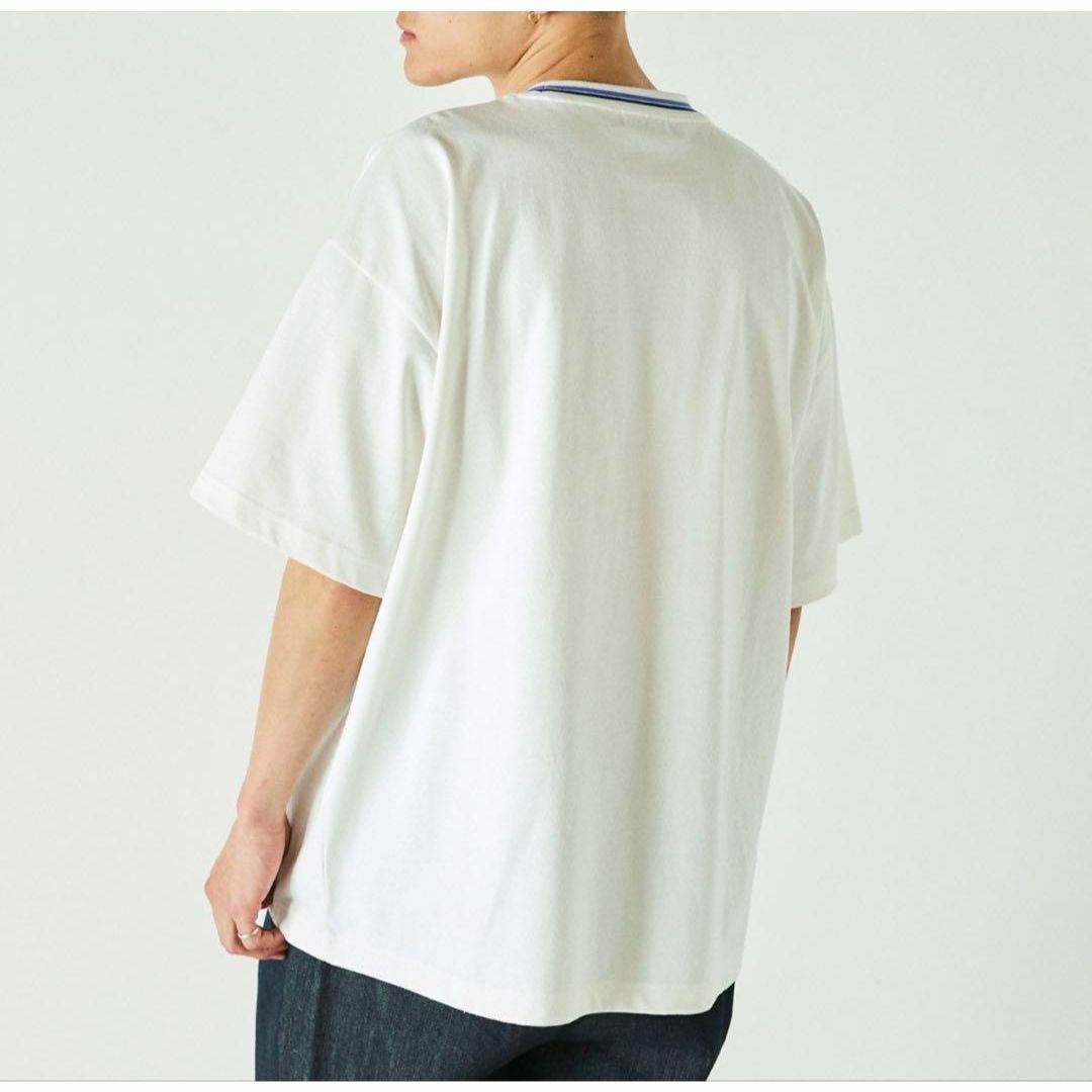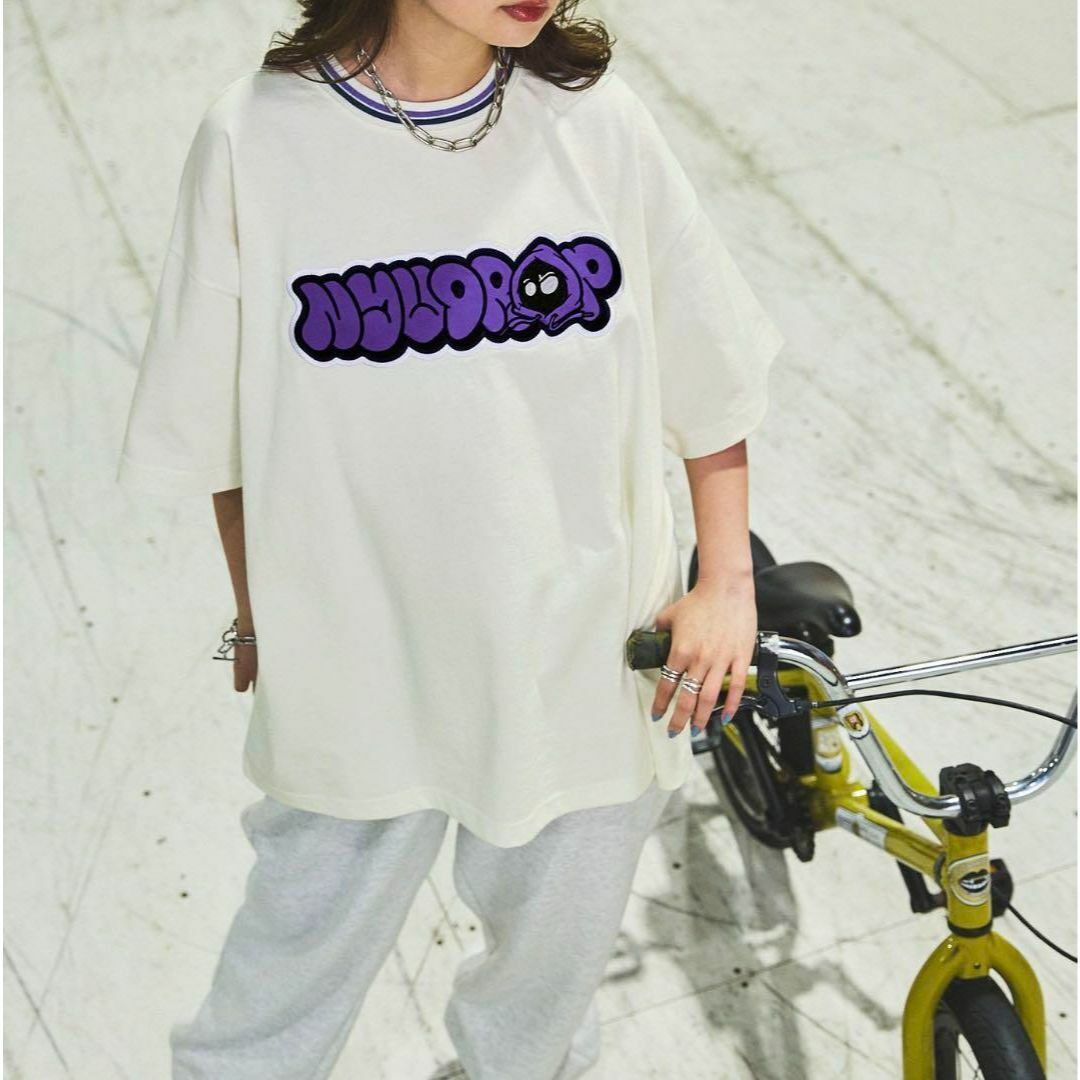 グラフィックロゴ刺繍 ラインリブTシャツ