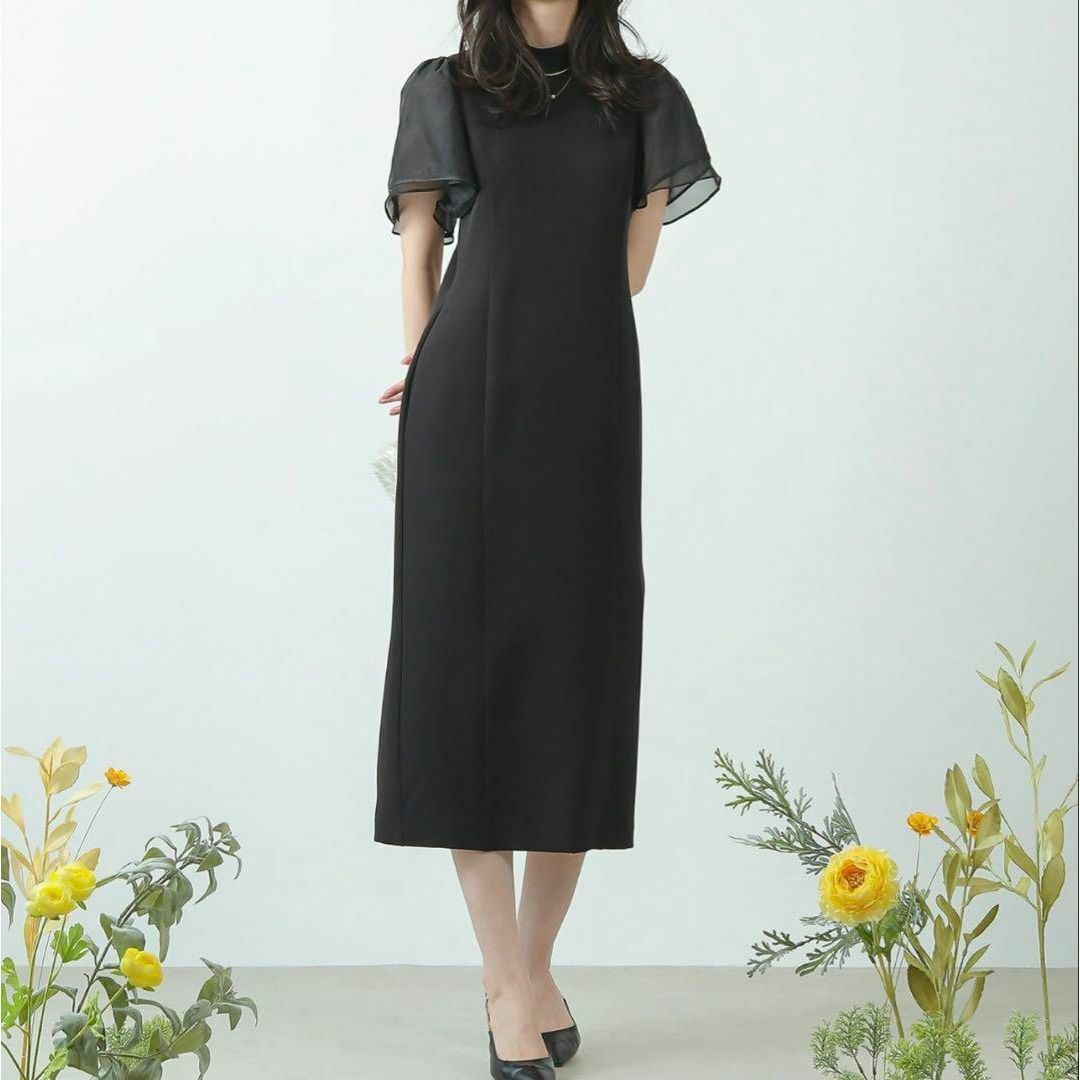 ・袖は透け感のある生地を2枚合わせ、さりげなく腕を華奢魅せ