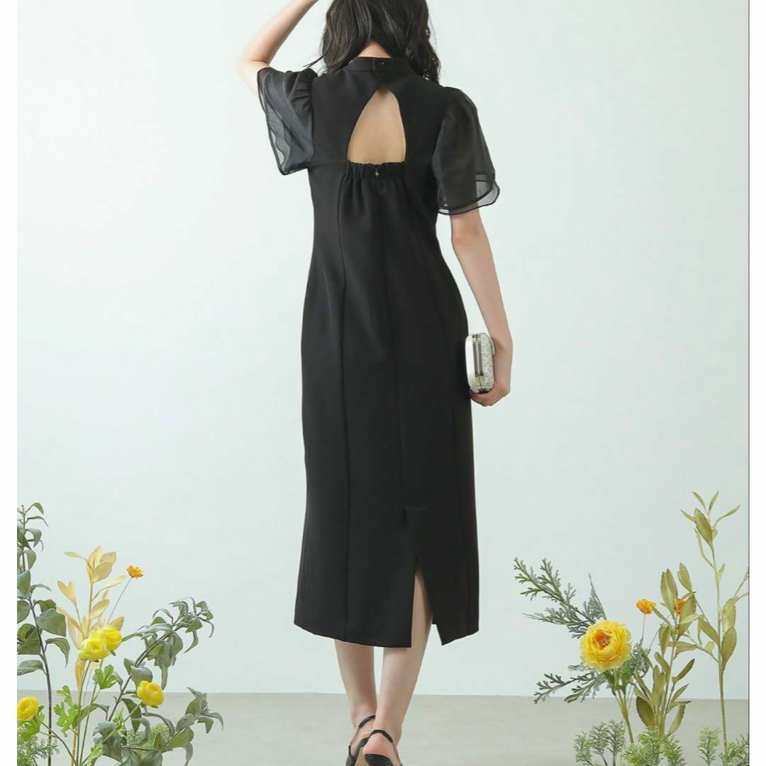 フレアスリーブ背中あきデザイン