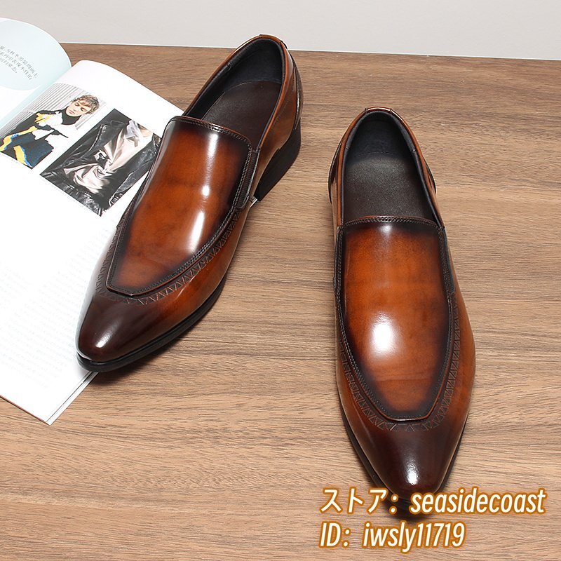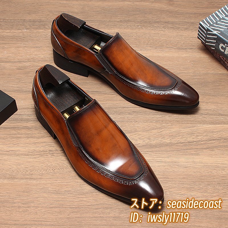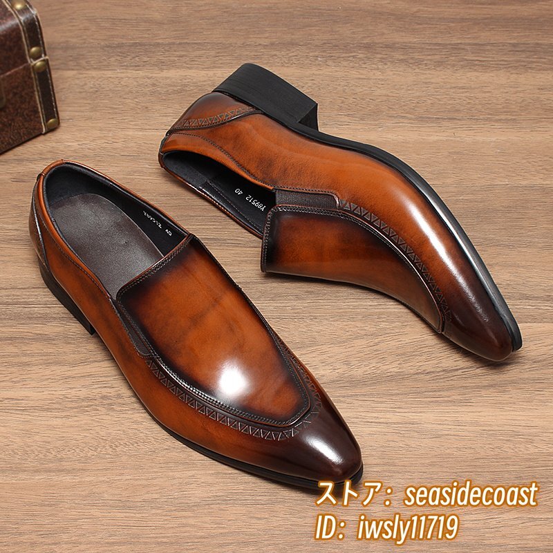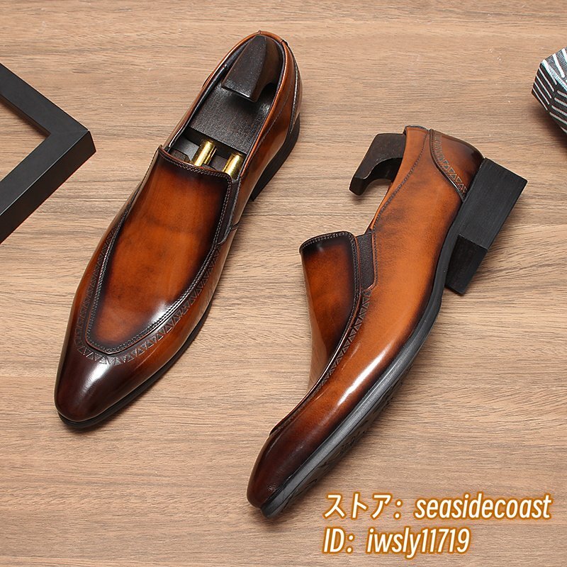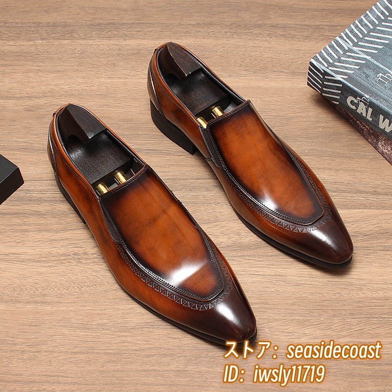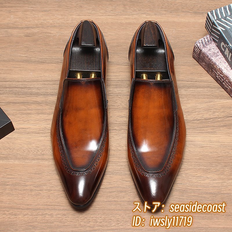 最高級★ビジネスシューズ イギリス風 職人手作り ローファー スリッポン メンズ 革靴 本革 レザーシューズ 紳士靴 超希少 ブラウン 25.5cm