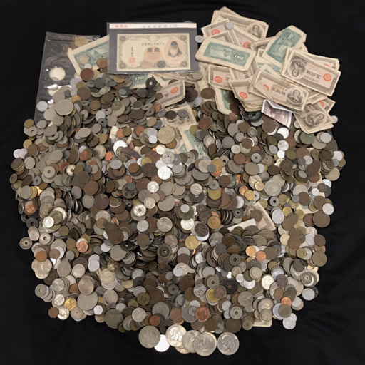 | 日本 寛永通宝 / EXPO70 100円 他 アメリカ 1ドル / ペルー 100ソル 等 古銭 古紙幣 海外硬貨 まとめ 総重量約26kg |