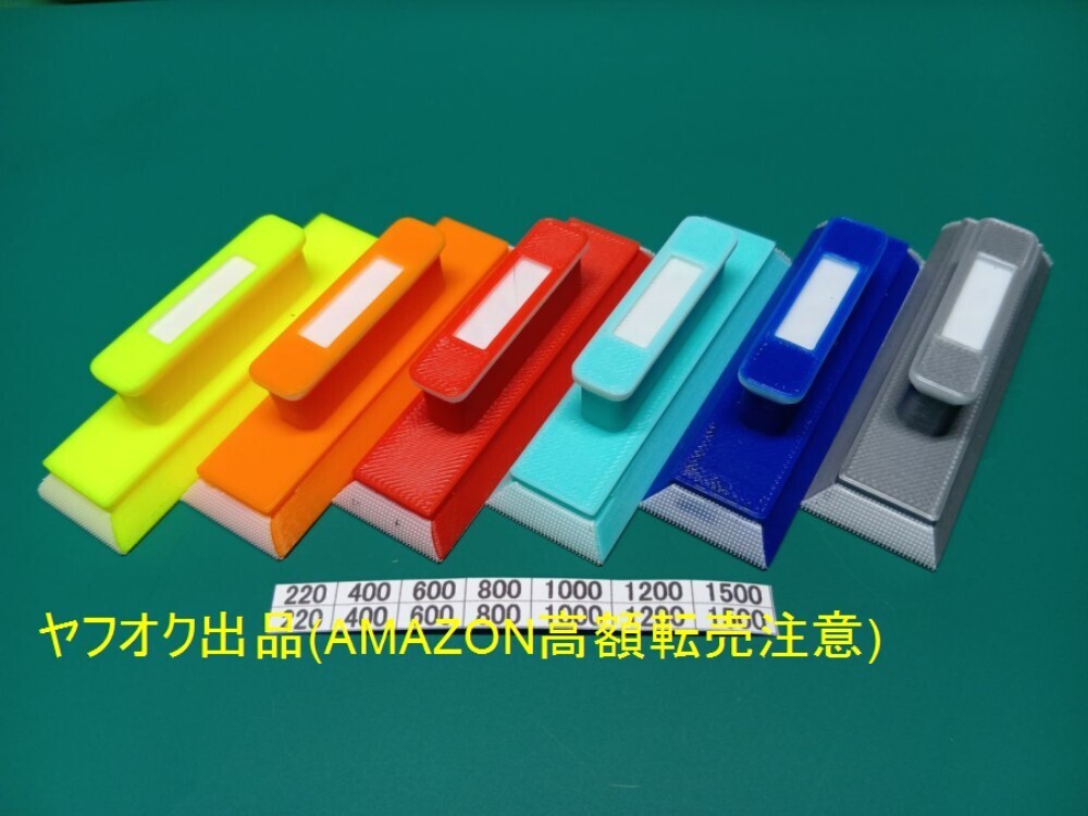 ご参照、ありがとうございます。マジックテープを貼り付けたヤスリホルダーです。コバックスのスーパーアシレックスやスジ彫り堂のマジックヤスリを貼りつけて使用します。ヤスリ面のサイズは72x21mm(スジ彫り堂のマジックヤスリと同一サイズ)です。スジ彫り堂のマジックホルダーは5枚目写真のようにヤスリ面の際の 部分にマジックテープがありません。際の部分でのヤスリ掛けがやり易い よう、本商品を作成しました。セット数別で出品しております。1個: 660円2個:1,020円3個:1,370円4個:1,730円5個:2,080円6個:2,380円ご購入後の取引メッセージにて、色をご指定ください。ヤスリの番手のシールは貼りつけていない状態で発送します。ご購入者様にてハサミでカットして貼り付けをお願いします。マジックヤスリに付着した削りかすは、猫の爪とぎに擦りつけるときれいに取れます。ダイソーで高さ2cm程度の猫の爪とぎ(段ボール製のもの)が販売されています。よろしくお願いします。