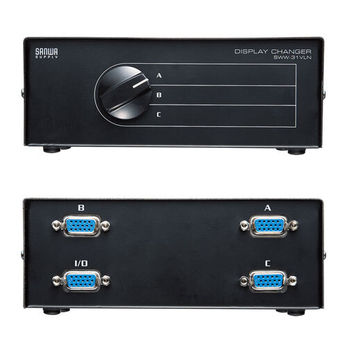 ※配送の送り主はサンワサプライ(株)と記載されています。沖縄・離島配送不可となります。 当店は正規販売代理店です。 特長 ディスプレイコネクタの1番ピンから15番ピンまで全ての信号線を全回路でストレートに切替える手動切替のディスプレイ切替器です。 切替時はディスプレイケーブルをストレートに延長しただけの状態になるので相性問題がほぼ発生しません。 ワイドディスプレイにも対応します。 全回路切替え、ストレート全結線仕様なのでパソコンの種類を選びません。 ※切り替えられていないポート側のパソコンはディスプレイが接続されていない状態になります。パソコンによっては映像の外部出力の停止、解像度設定の初期化を行うことがあります。これはパソコン(グラフィックボード)の仕様によるものであり本製品側で対応することはできませんので、あらかじめご了承ください。 メーカー保証期間365日 ※当店発注日からになります 気をつけておりますが、タイミングによっては在庫切れの場合があります。 ※パソコン起動時にディスプレイが接続された状態でないと正常な解像度で出力できない場合があります。その際は、起動するパソコン側に切り替えてディスプレイと接続した状態でパソコンを起動してください。 ※画像信号はケーブル上での信号損失が非常に大きく、ケーブルの品質に劣化具合が大きく左右されます。特に長距離に伝送する場合は高品質な複合同軸ケーブルをご使用ください。ノイズの多い環境やご使用のディスプレイ、パソコンによりゴーストや画質の劣化が起る場合があります。 ※ミニD-sub(HD)15pin=HD(3WAY)15pinです。 仕様